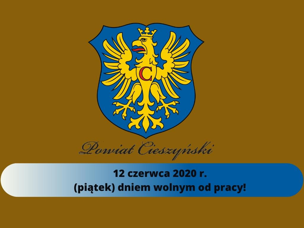 Informujemy, że dniu 12 czerwca 2020 r. (piątek) Starostwo Powiatowe w Cieszynie, Powiatowe Centrum Pomocy Rodzinie w Cieszynie, Powiatowy Zarząd Dróg Publicznych w Cieszynie, Powiatowy Urząd Pracy w Cieszynie będą nieczynne.