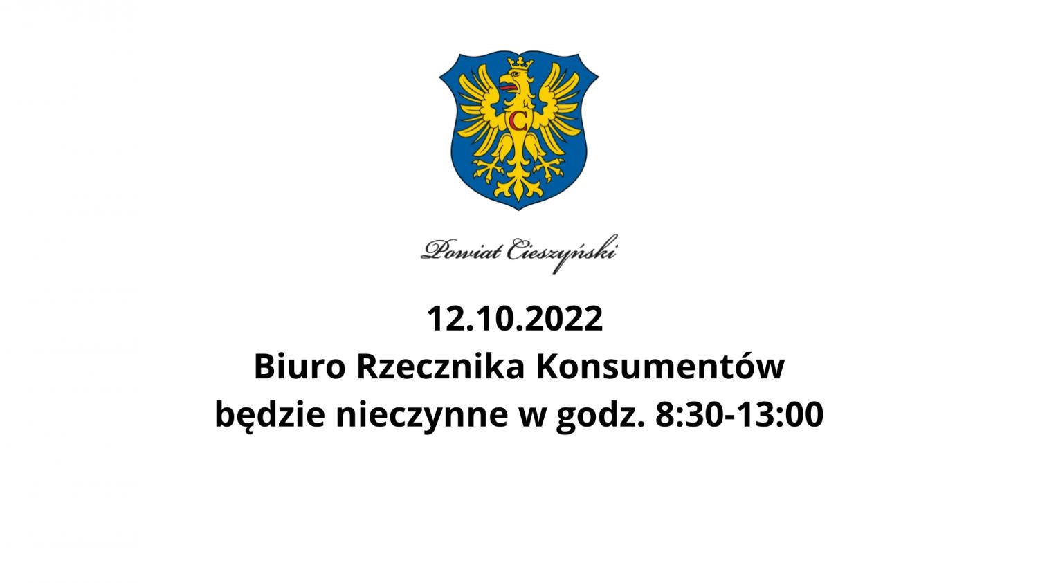 12.10.2022 Biuro Rzecznika Konsumentów będzie nieczynne w godz. 8:30-13:00