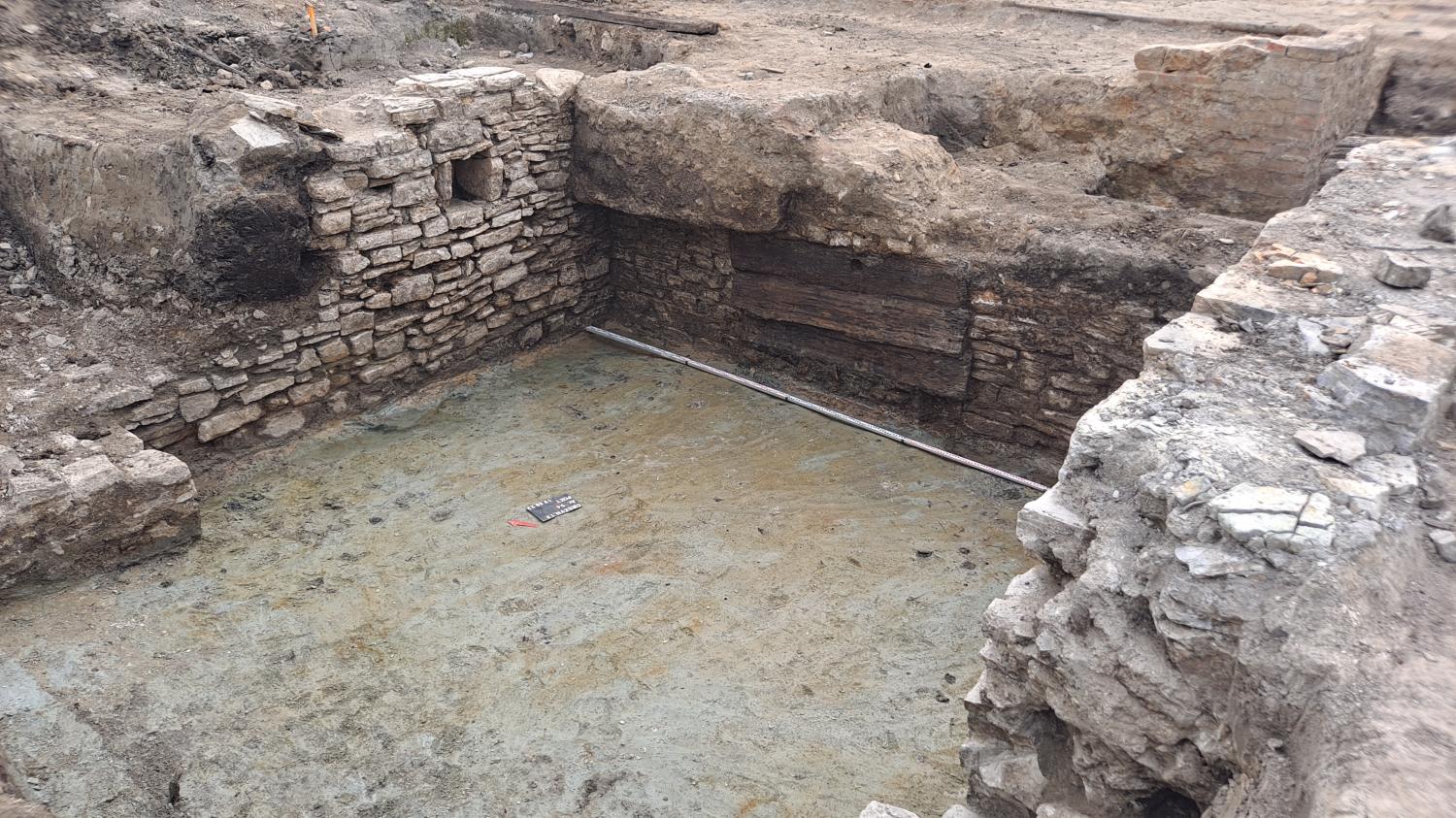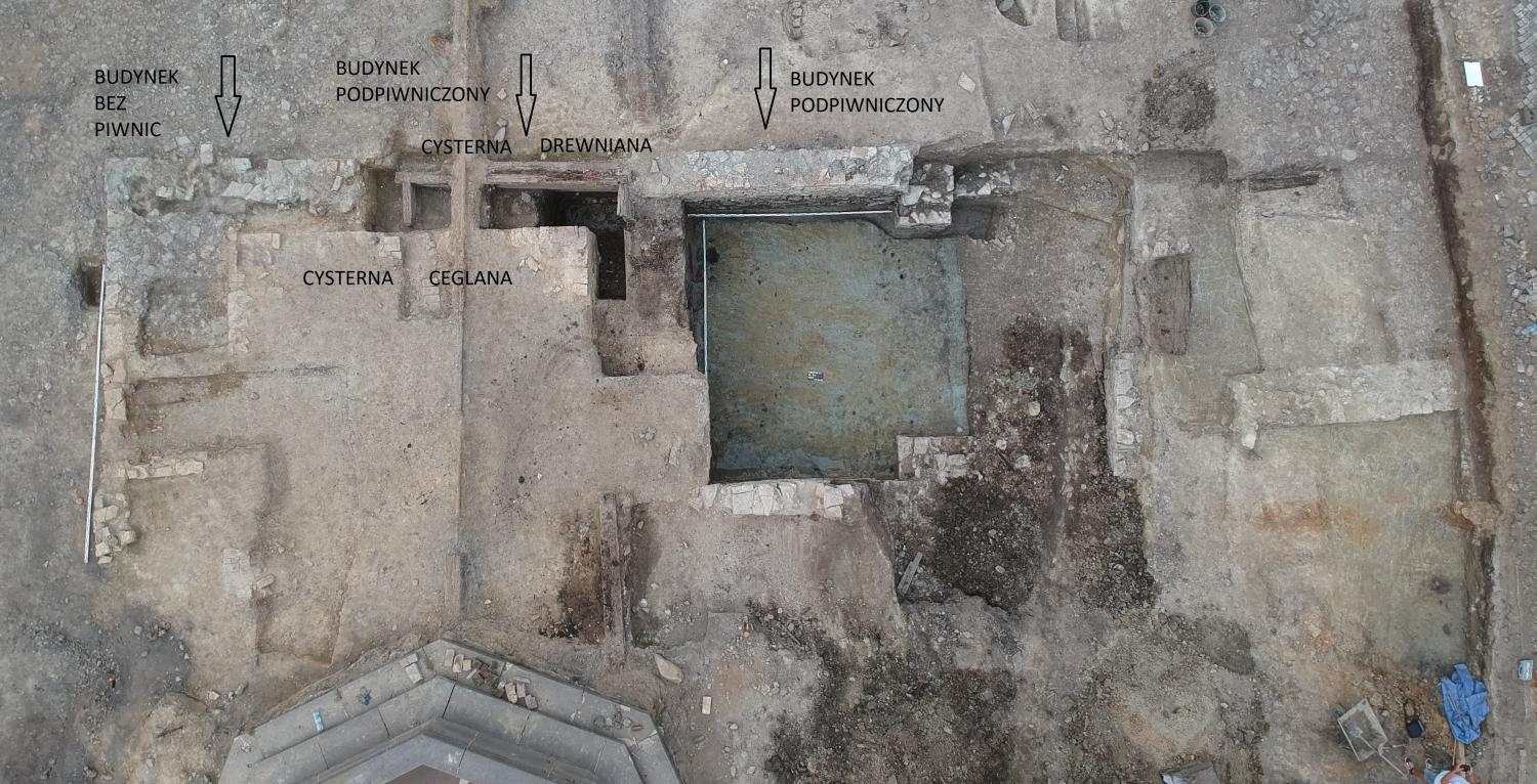 Możemy teraz zastanowić się, do czego owe pomieszczenia służyły… Zasyp wydobywany z piwnicy był bardzo bogaty w monety późnośredniowieczne (ponad 30 sztuk), fragmenty kafli piecowych i odzież skórzaną, głównie buty. Szczególnie wiele wydobyto stąd plomb towarowych: z wizerunkami świętych patronów rzemieślników (np. św. Jerzego), inicjałami, tekstem czy herbem. Moglibyśmy zatem pokusić się o stwierdzenie, że badane pomieszczenie piwniczne było wykorzystywane raczej do handlu niż wytwórstwa. Część „produkcyjna” rynku z obiektami drewnianymi znajdowała się przed dzisiejszym ratuszem, z nią związany był duży obiekt, o którym pisaliśmy wcześniej, wewnątrz którego znajdowała się studnia. Piwnica kamienna to już zupełnie inny charakter obiektu, bardziej prestiżowy. W jego zasypie obecne były również cegły „palcówki” co może wskazywać, że nadziemne partie budynku mogły być jednak murowane, a nie drewniane jak wcześniej przypuszczaliśmy.
