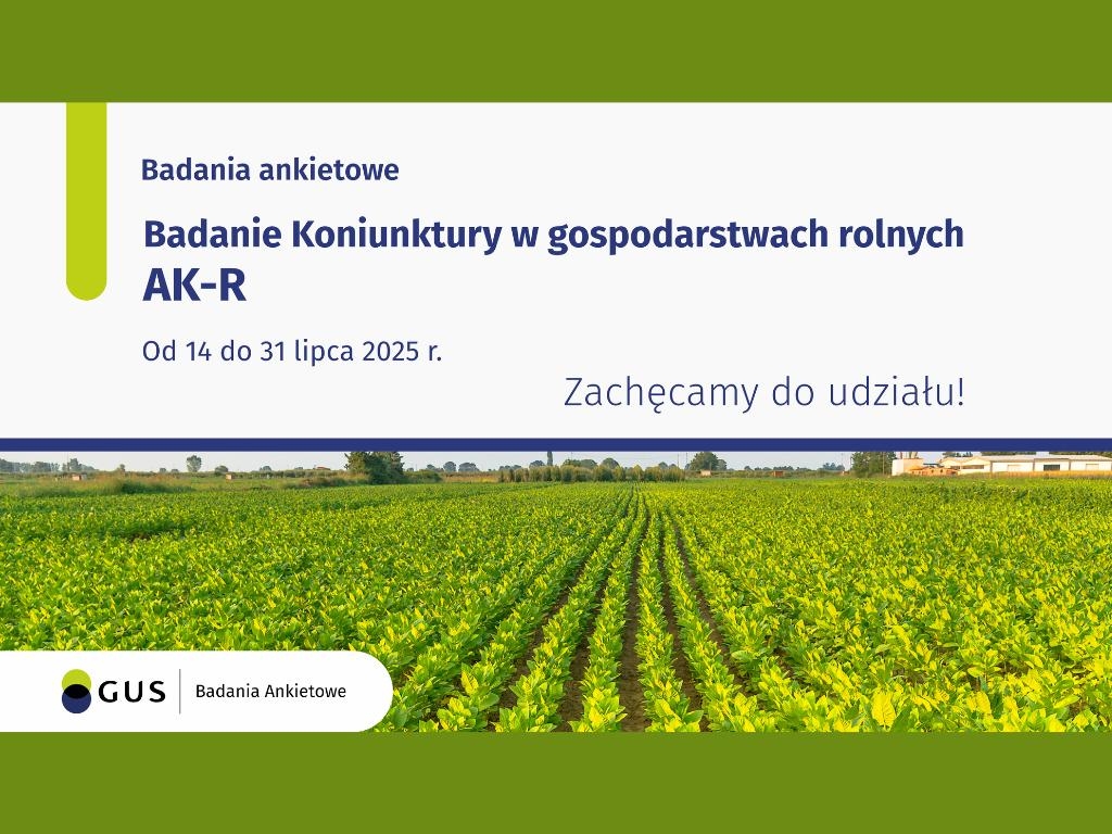 W dniach od 14 do 31 lipca 2025 r. na terenie całego kraju Główny Urząd Statystyczny przeprowadzi kolejną edycję Badania Koniunktury w Gospodarstwach Rolnych (AK-R). Celem badania jest pozyskanie informacji na temat bieżącej sytuacji rolnictwa oraz prognoz rolników dotyczących drugiego półrocza 2025 roku.