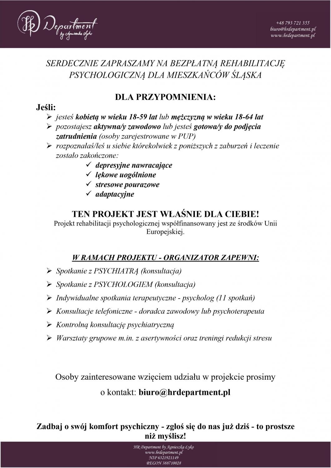 Bezpłatna rehabilitacja psychologiczna dla mieszkańców Śląska