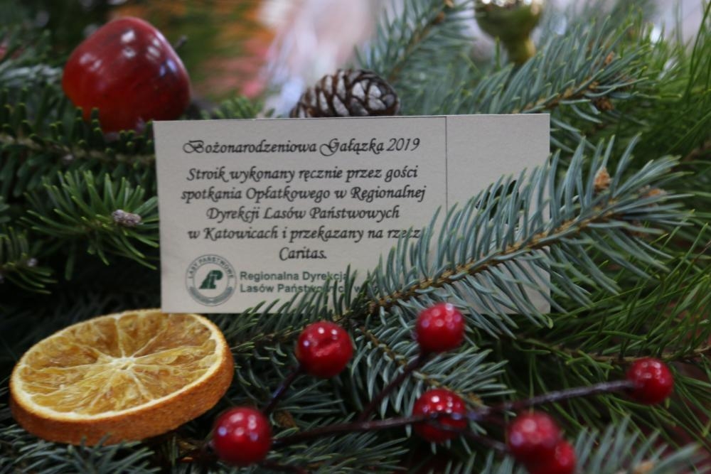 Warsztaty „Bożonarodzeniowa gałązka”, były częścią tradycyjnego spotkania opłatkowego. Po krótkim wstępie obecnych na spotkaniu księży: Marka Batora, kapelana leśników szefa Caritas Archidiecezji Częstochowskiej, Alana Ruska OFM, proboszcza, kustosza kalwarii i kustosza Panewnik, Ireneusza Tatury, proboszcza parafii Podwyższenia Krzyża Świętego w Katowicach-Brynowie oraz Artura Suski, kapelana Straży Granicznej, goście złożyli sobie życzenia.