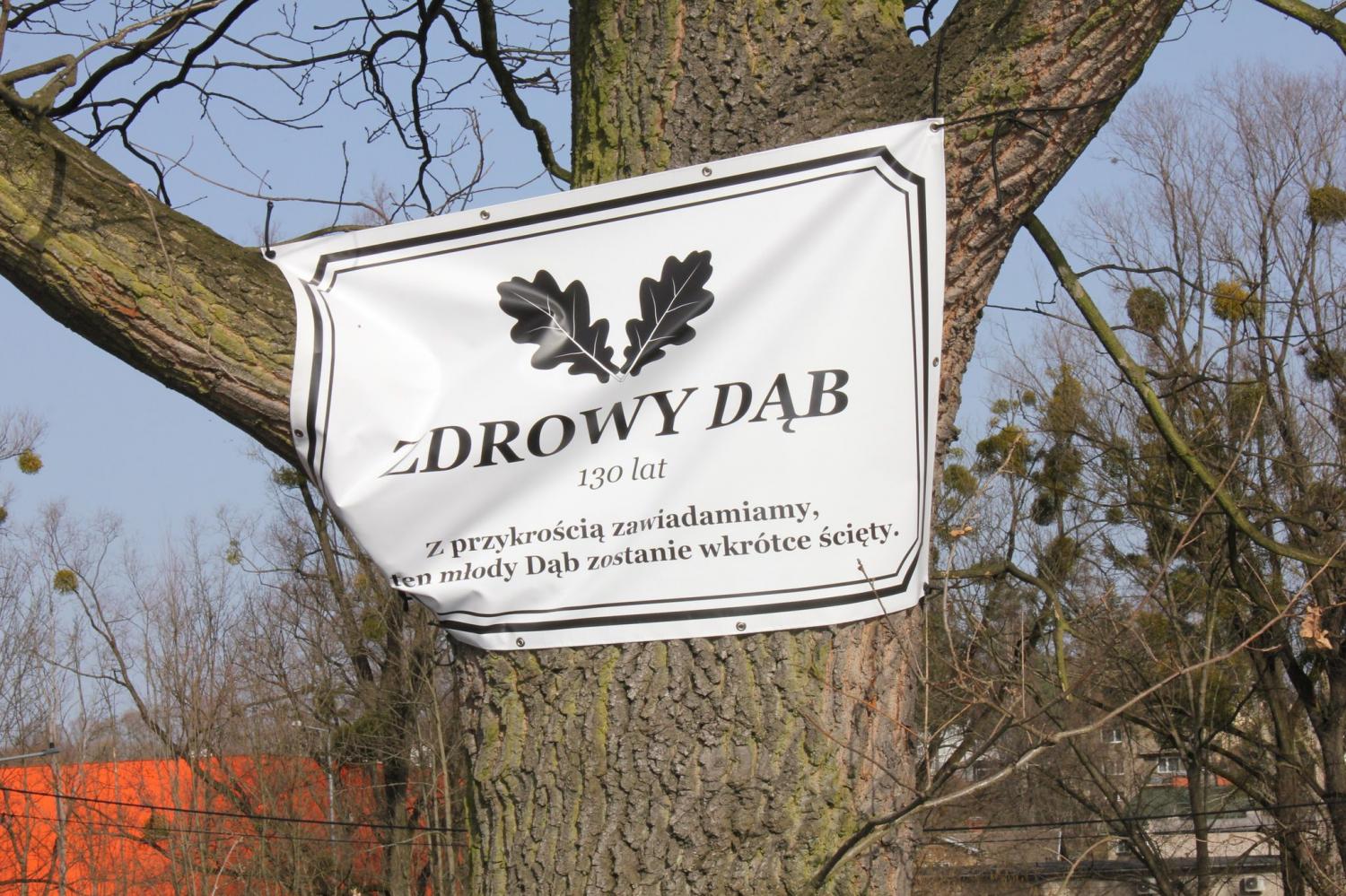 - W środę, 24 lutego 2021 r. w godzinach dopołudniowych na drzewie wciąż wisiał nekrolog z napisem: „Zdrowy Dąb”, żył 130 lat. Z Przykrością zawiadamiamy, że ten młody dąb zostanie wkrótce ścięty”, kończy Sylwia Pieczonka.