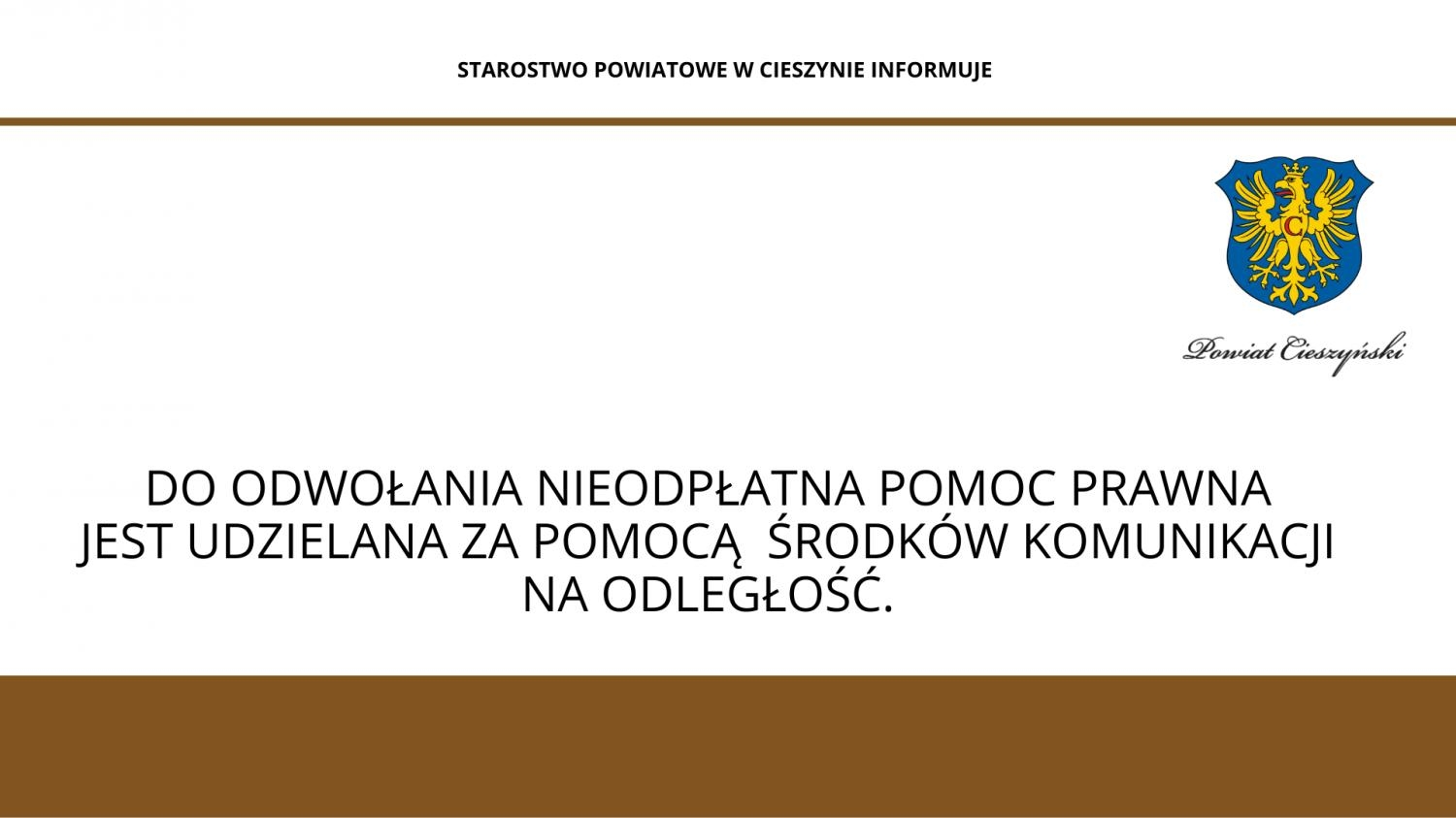 DO ODWOŁANIA NIEODPŁATNA POMOC PRAWNA JEST UDZIELANA ZA POMOCĄ ŚRODKÓW KOMUNIKACJI NA ODLEGŁOŚĆ