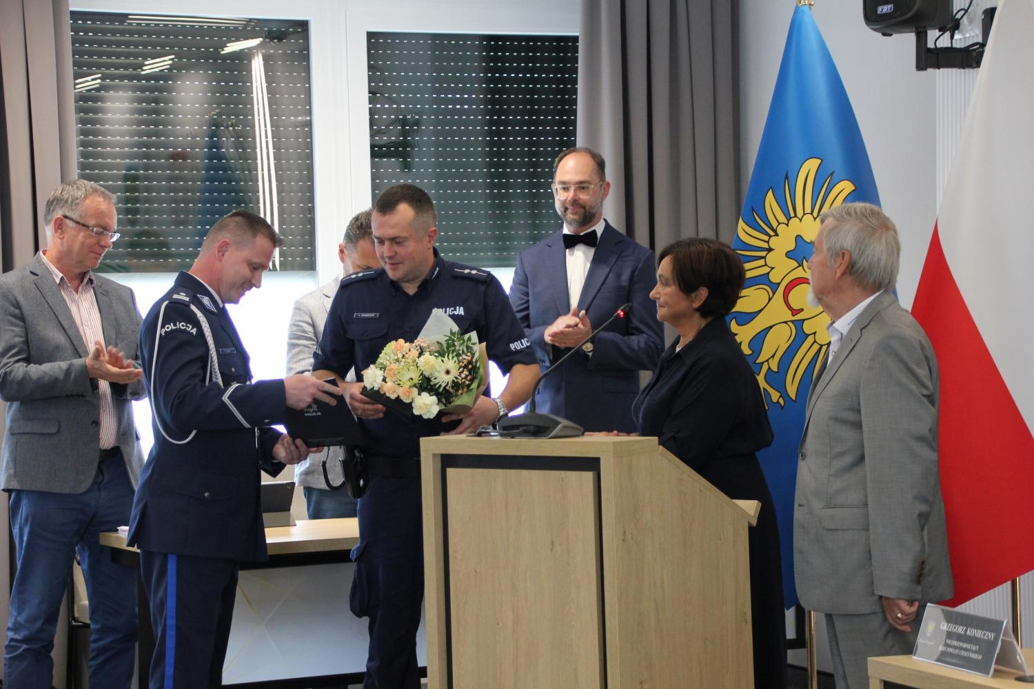 W imieniu lokalnej społeczności wyróżnienie wręczyła Pani Janina Żagan -Starosta Cieszyński, podkreślając, że dzielnicowy to nie tylko funkcjonariusz, ale przede wszystkim człowiek blisko ludzi.