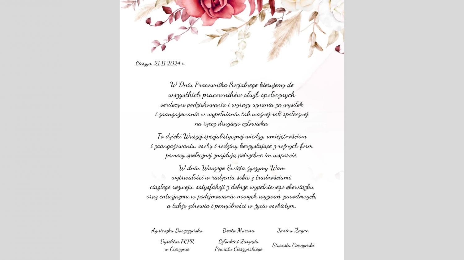 W Dniu Pracownika Socjalnego kierujemy do wszystkich pracowników służb społecznych serdeczne podziękowania i wyrazy uznania za wysiłek i zaangażowanie w wypełnianiu tak ważnej roli społecznej na rzecz drugiego człowieka.