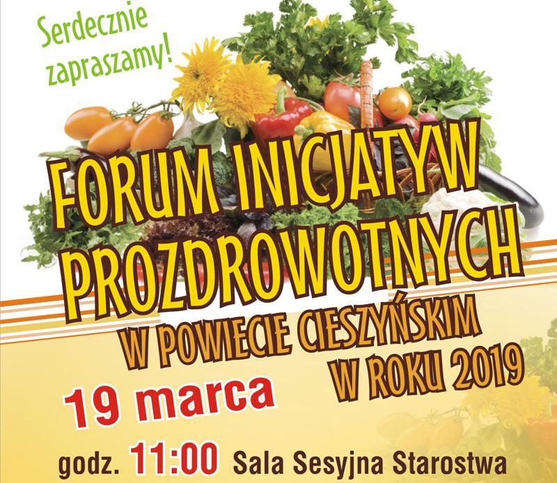Starostwo Powiatowe serdecznie zaprasza do udziału w „Forum Inicjatyw Prozdrowotnych w Powiecie Cieszyńskim w 2019 roku”, które odbędzie się 19 marca br. o godz. 11.00 w sali sesyjnej Starostwa Powiatowego w Cieszynie przy ul. Bobreckiej 29.
