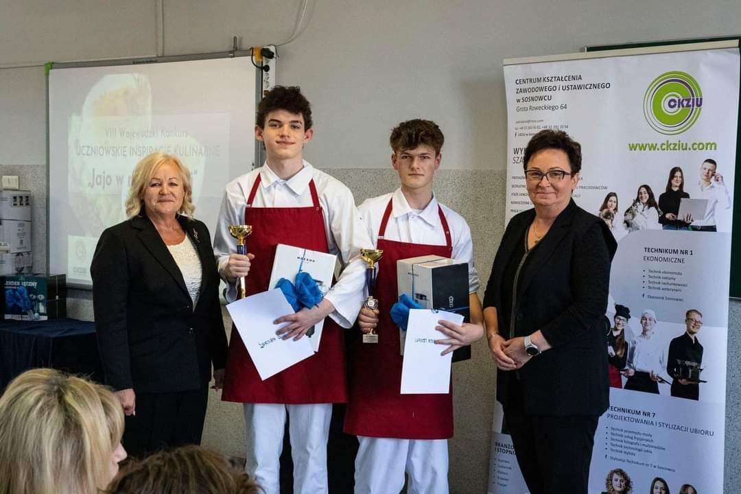 W czwartek, 21 marca, uczniowie Zespołu Szkół Ekonomiczno-Gastronomicznych w Cieszynie Jakub Holisz oraz Adrian Czapla reprezentowali naszą szkołę w wojewódzkim konkursie "Uczniowskie Inspiracje Kulinarne", gdzie tematem wiodącym było "Jajko w roli głównej ".