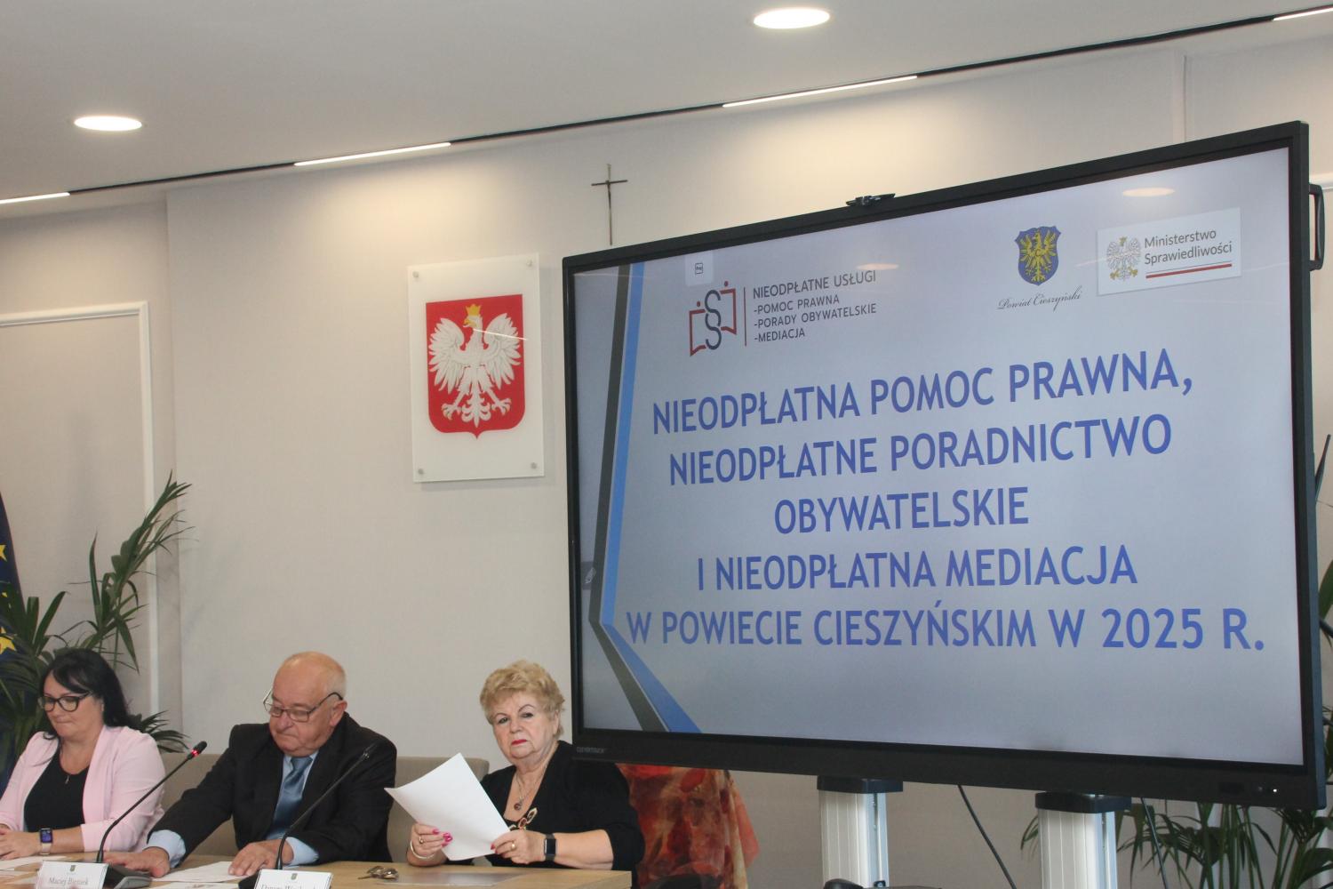 Gościem sesji była Karolina Pupek Kierownik Referatu Administracyjnego ze Starostwa Powiatowego w Cieszynie, która zaprezentowała informacje na temat nieodpłatnej pomocy prawnej, poradnictwa obywatelskiego oraz mediacji dostępnych na terenie Powiatu w 2025 roku.
