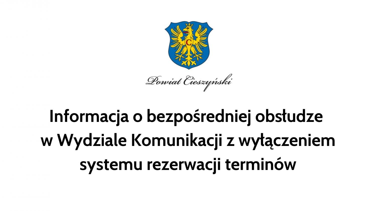 Informacja o bezpośredniej obsłudze w Wydziale Komunikacji z wyłączeniem systemu rezerwacji terminów