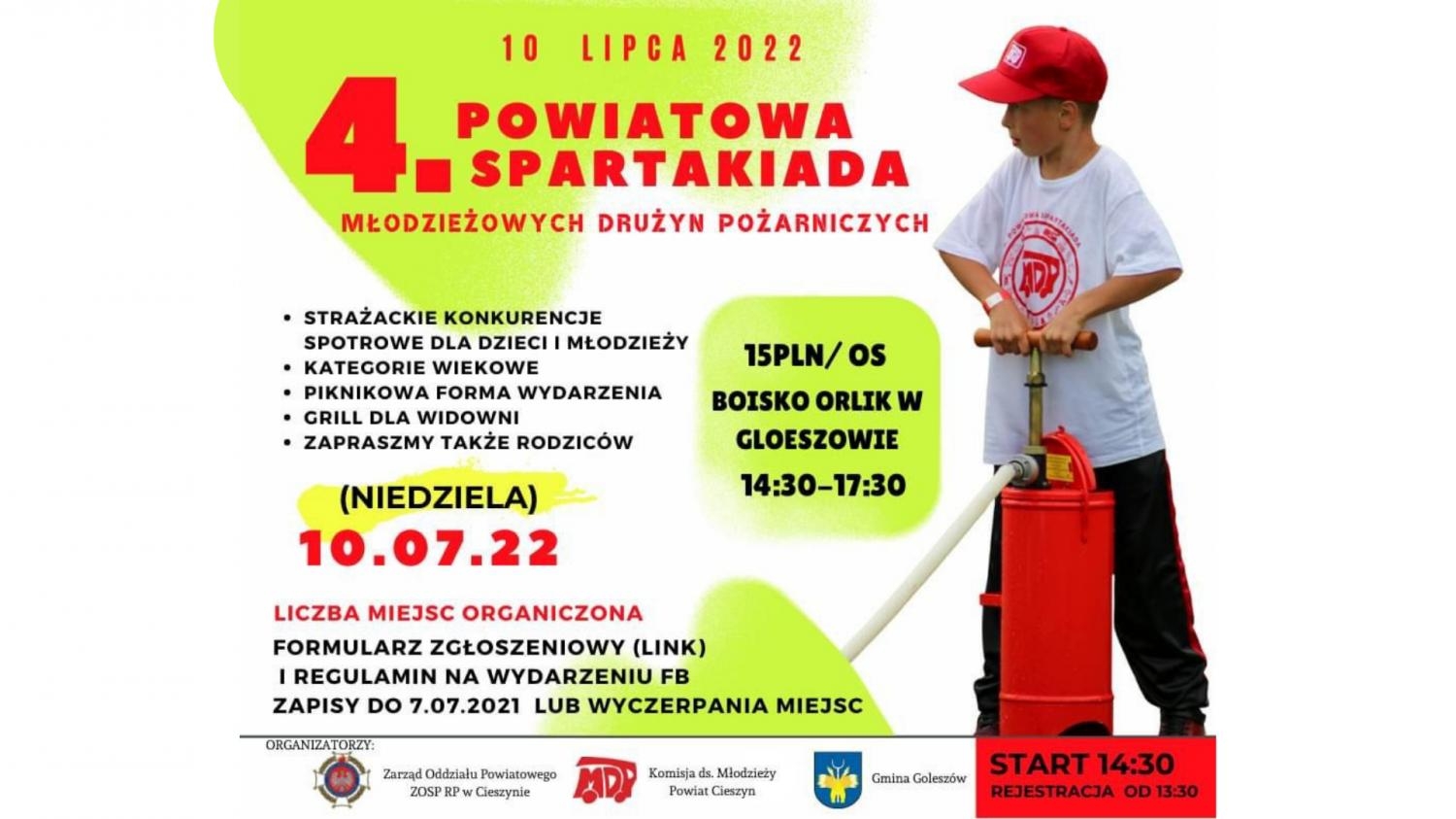 W najbliższą niedzielę 10.07.2022 r. na boisku sportowym "Orlik" w Goleszowie odbędzie się IV Powiatowa Spartakiada Młodzieżowych Drużyn Pożarniczych. W wydarzeniu weźmie udział ponad 200 uczestników z powiatu Cieszyńskiego oraz gości.