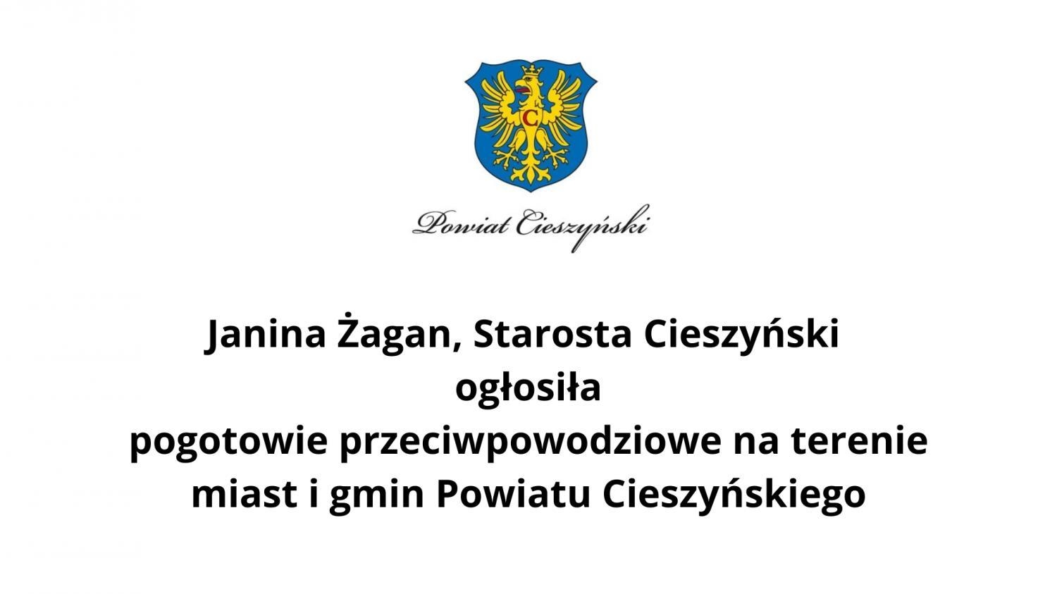 Janina Żagan, Starosta Cieszyński ogłosiła pogotowie przeciwpowodziowe