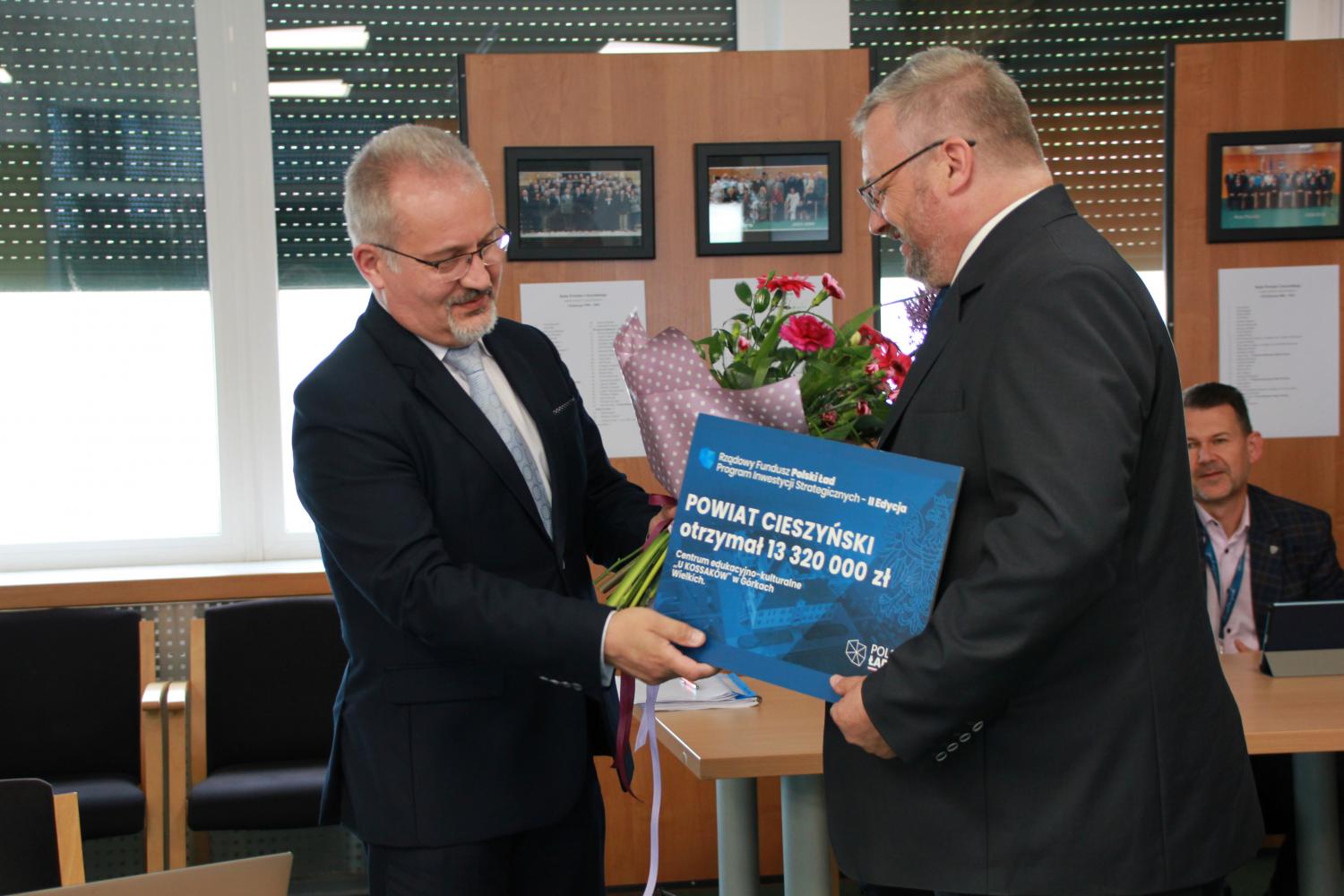 Gościem Rady Powiatu Cieszyńskiego był Grzegorz Gaża Poseł na Sejm RP, który wręczył Mieczysławowi Szczurkowi Staroście Cieszyńskiemu promesę na utworzenie CENTRUM EDUKACYJNO-KULTURALNEGO „U KOSSAKÓW” w Górkach Wielkich. Dzięki otrzymanemu wsparciu finansowemu z Rządowego Funduszu Polski Ład Program Inwestycji Strategicznych – II Edycja kwoty 13.320.000 zł – Powiat Cieszyński dokona adaptacji zabytkowego spichlerza na terenie „Dworu”. Przewidywana wartość inwestycji wynosi: 14.800.000 zł.