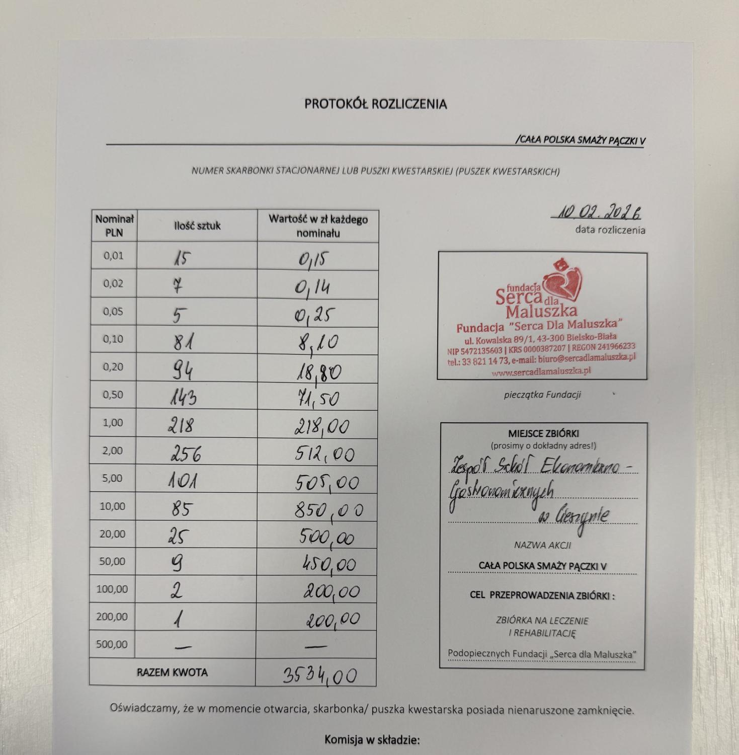 Po podliczeniu wszystkich puszek z naszego 3-dniowego kiermaszu, z dumą ogłaszamy, że dzięki Waszej niesamowitej hojności, udało nam się zebrać łącznie: 3534 PLN.