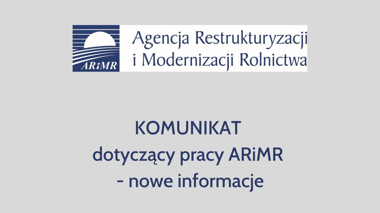 KOMUNIKAT dotyczący pracy ARiMR - nowe informacje