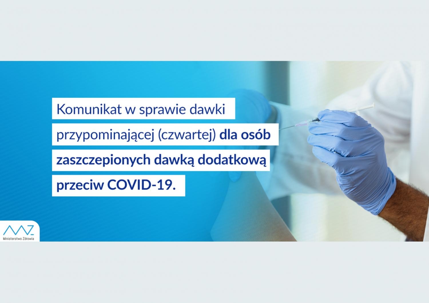 Komunikat nr 21 Ministra Zdrowia w sprawie dawki przypominającej (czwartej) dla osób zaszczepionych dawką dodatkową przeciw COVID-19.