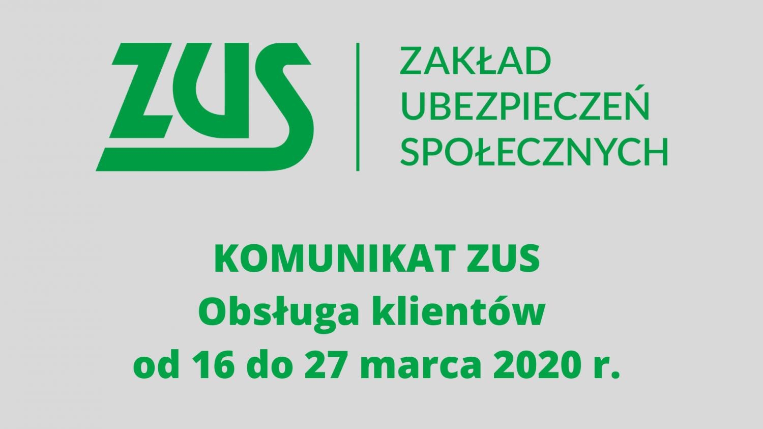KOMUNIKAT ZUS Obsługa klientów od 16 do 27 marca 2020 r.