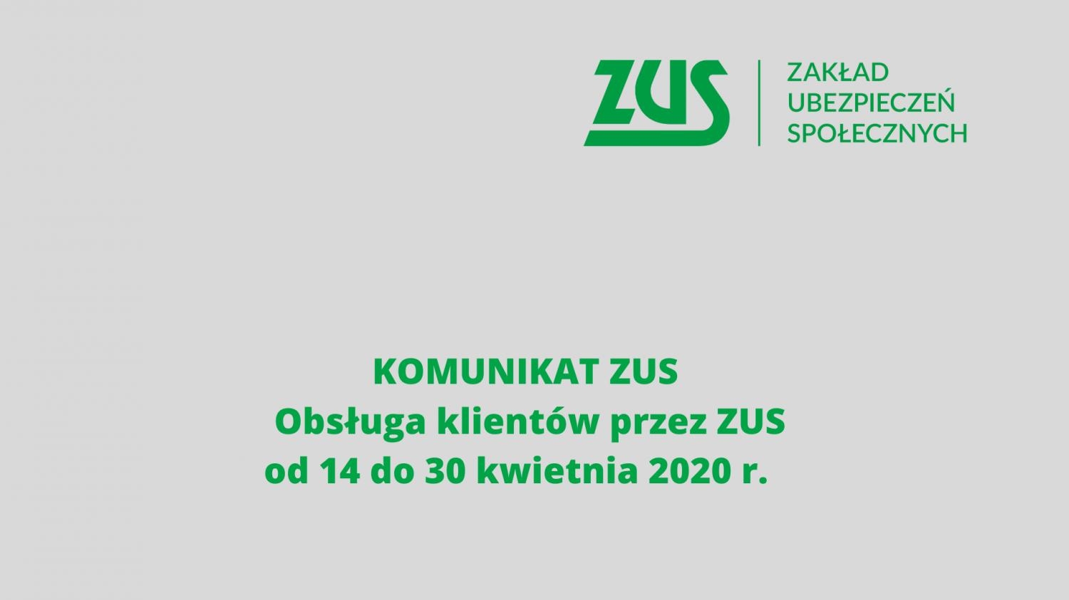 Komunikat ZUS Obsługa klientów przez ZUS od 14 do 30 kwietnia 2020 r.