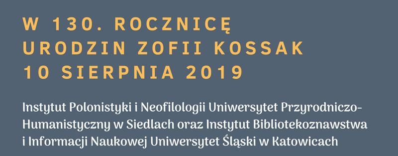 10 sierpnia 2019 r. godz. 10:15 w Centrum Kultury i Sztuki „Dwór Kossaków” w Górkach Wielkich odbędzie się konferencja naukowa poświęcona znanej polskiej powieściopisarce Zofii Kossak z okazji Jej 130 urodzin.