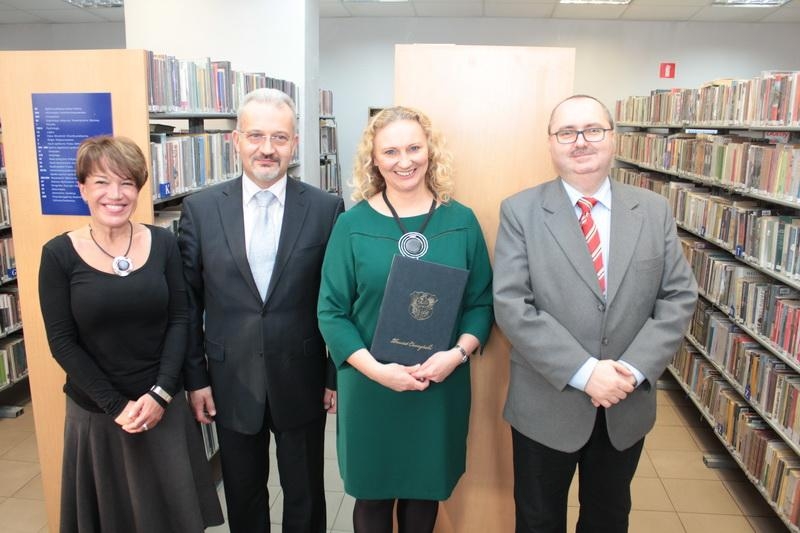 Uroczystego wręczenia dyplomu i nagrody pieniężnej wysokości 1000 zł w siedzibie GBP w Chybiu dokonali Starosta Cieszyński Mieczysław Szczurek i Dyrektor Biblioteki Miejskiej w Cieszynie – Izabela Kula. Nagrodę odebrała Magdalena Strządała – dyrektor GBP w Chybiu, zaś gratulacje dobrze funkcjonującej instytucji usłyszał Andrzej Bura, Sekretarz Gminy Chybie. Nagroda pieniężna dla biblioteki publicznej zostanie przeznaczona na zakup materiałów bibliotecznych, wzbogacając w ten sposób zbiory biblioteczne lub sprzęt komputerowy, poprawiając stan wyposażenia biblioteki i jakości świadczonych usług.