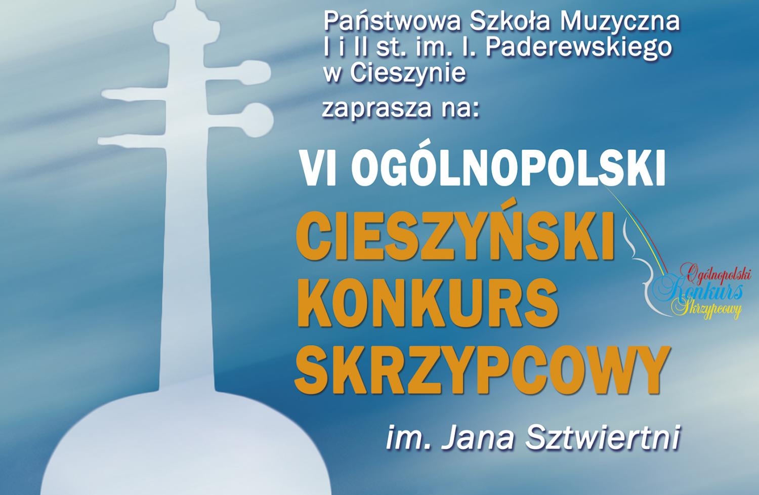 Państwowa Szkoła Muzyczna I i II st. w Cieszynie zaprasza na VI Ogólnopolski Konkurs Skrzypcowy im. Jana Sztwiertni, który odbędzie się w dniach: 11-13 kwietnia 2019 r. w Salach Koncertowych Szkoły Muzycznej w Cieszynie.