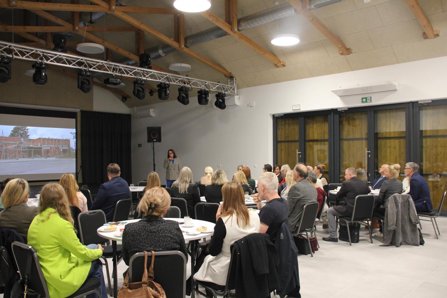 Cecylia Gasz-Płońska – Dyrektor Gminnego Ośrodka Kultury w Hażlachu opowiedziała o nowym miejscu na mapie kulturalnej Śląska Cieszyńskiego, przybliżyła bogatą i różnorodną ofertę działalności instytucji oraz oprowadziła gości po zakamarkach obiektu. Nowoczesne wnętrza „Stodoły” zachwyciły zgromadzonych.