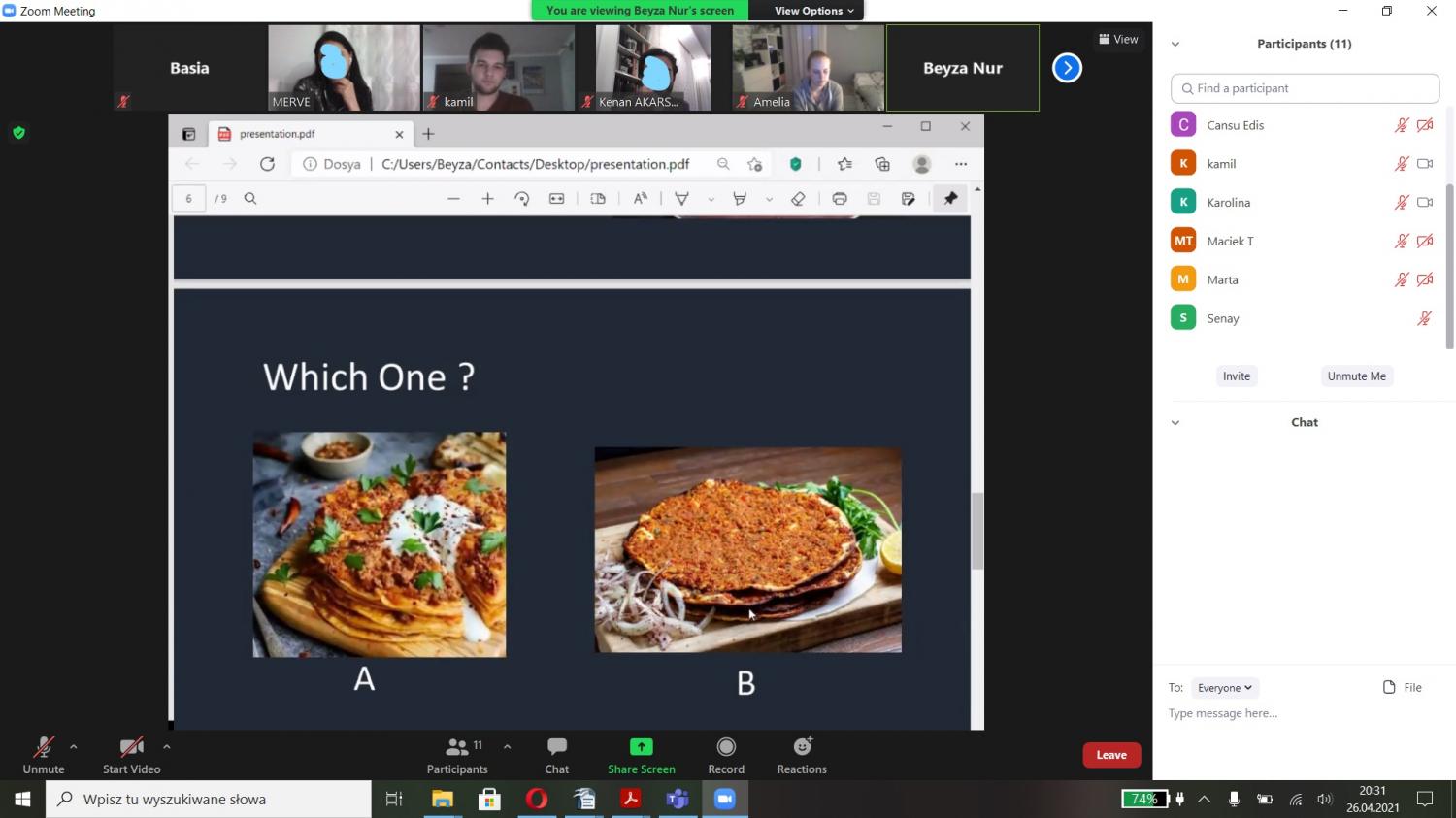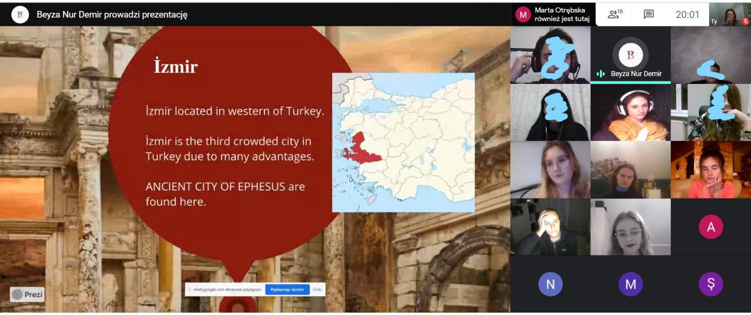 Odbyły się także spotkania ze studentami z Turcji. Młodzi Turcy przyjęli zaproszenie, aby regularnie spotykać się na wideokonferencjach i wspólnie uczyć się języka angielskiego. Odbyły się już dwa takie spotkania, których tematem były PODRÓŻE i KULINARIA. Prezentowane były nie tylko tradycyjne polskie dania, czy pyszne tureckie potrawy, ale i interesujące miejsca do zobaczenia u nowych przyjaciół Osucha w Turcji. I wszystko w języku angielskim :)