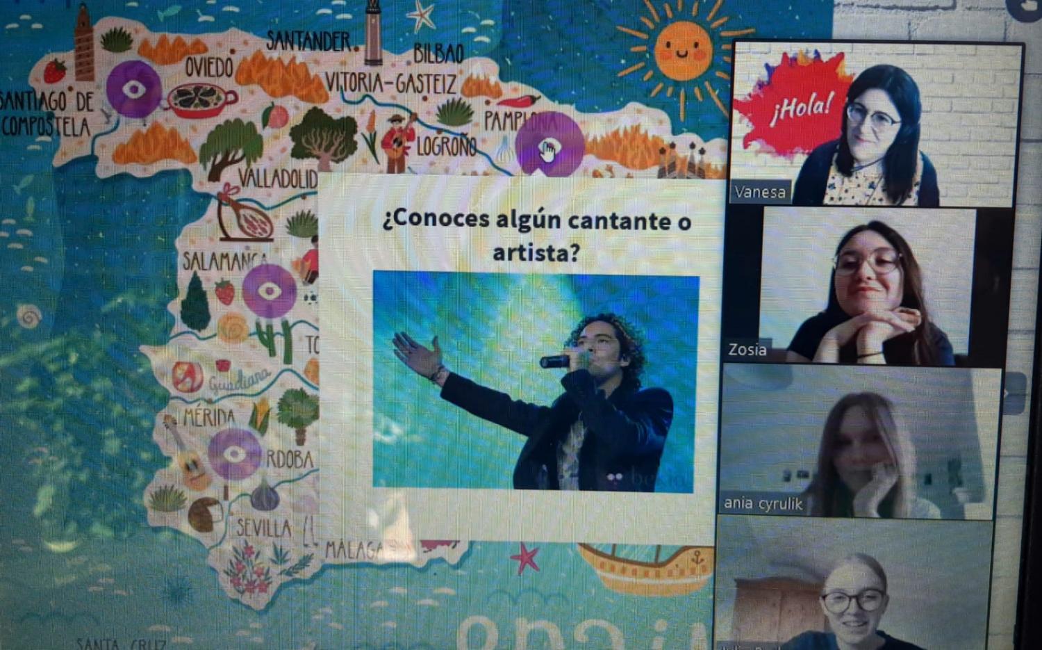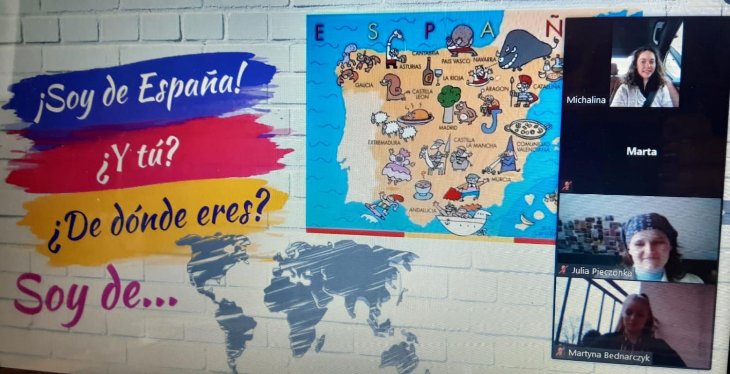 Uczniowie Osucha mieli ostatnio okazję wziąć udział w lekcjach języka hiszpańskiego - przeprowadzonych za pomocą wideokonferencji. Lekcje poprowadziła rodowita Hiszpanka Vanesa ze szkoły International House wprost z Kadyksu, regionu Andaluzji. Spotkanie z językiem hiszpańskim zostało zrealizowane w ramach współpracy z placówką edukacyjną "Project", która jest głównym organizatorem wymiany młodzieży pomiędzy I Liceum im. A. Osuchowskiego i szkołą z Hiszpanii.