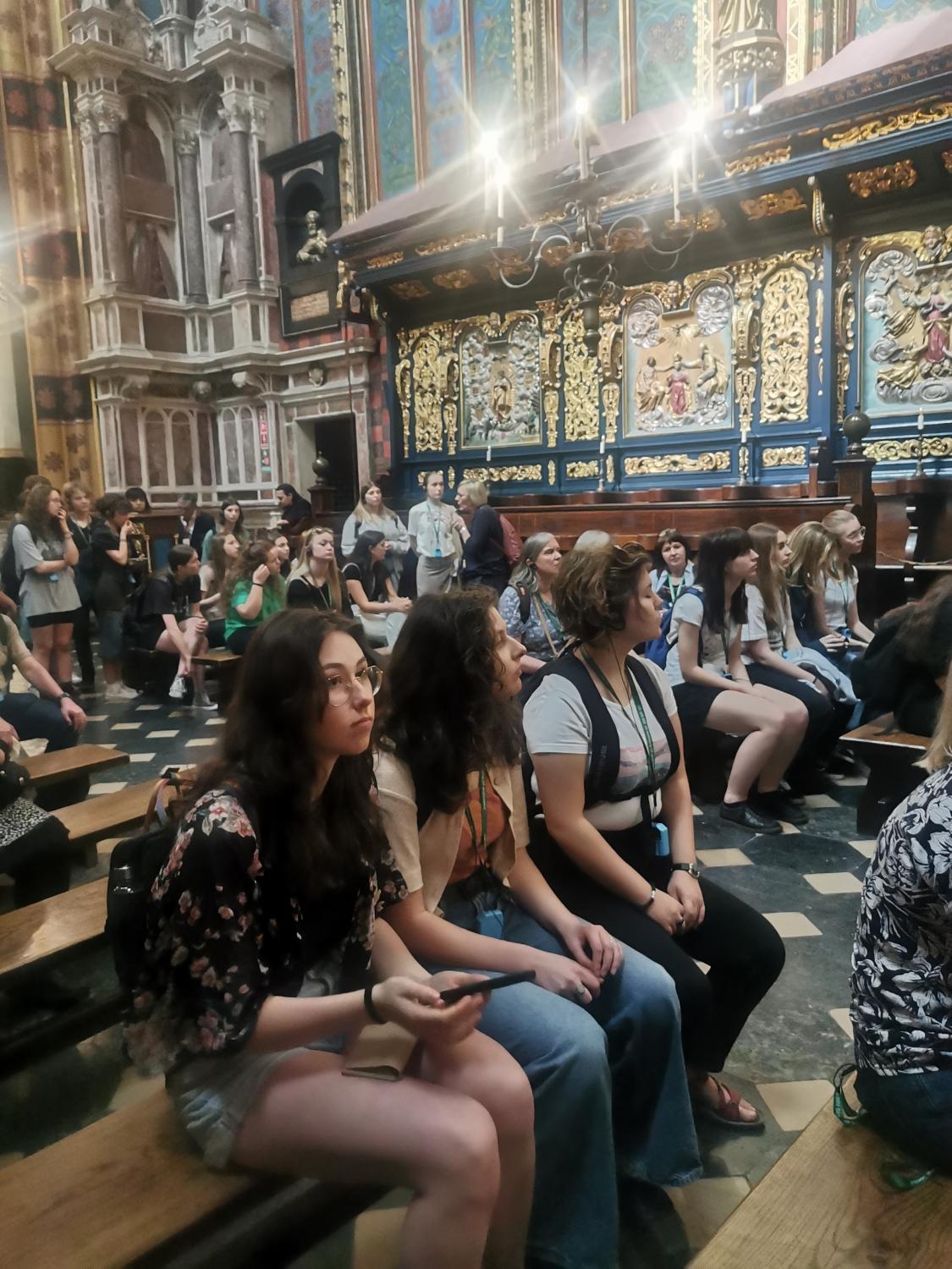 W poniedziałek wybraliśmy się do Krakowa. Byliśmy na Wawelu i w Kościele Mariackim, którego bogate wnętrze zrobiło na naszych gościach ogromne wrażenie. Spacerowaliśmy też po Starym Mieście. Pogoda tego dnia również dopisała, więc mogliśmy w pełnym słońcu podziwiać piękną architekturę miasta.