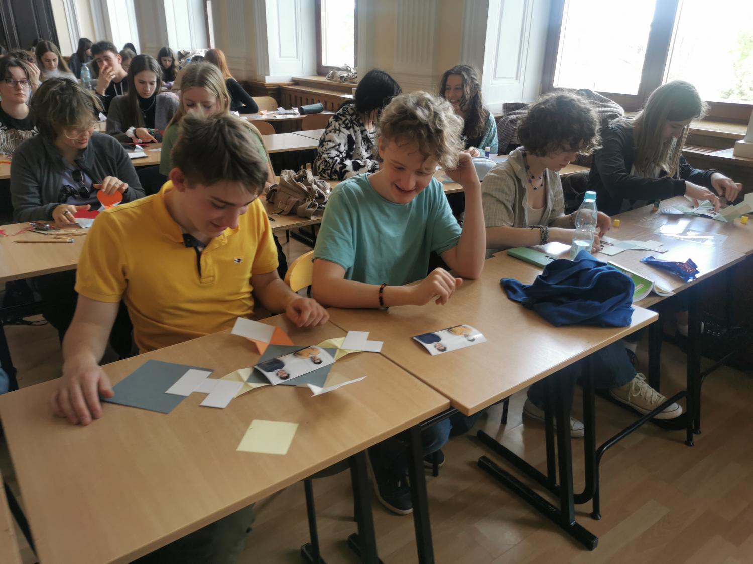 Goście przyjechali do nas w czwartek, 04.04.2024 wieczorem. Piątek, czyli pierwszy wspólny dzień rozpoczął się od zwiedzania Cieszyna oraz spotkania z panią Burmistrz Gabrielą Staszkiewicz. Później braliśmy udział w warsztatach artystycznych w naszej szkole tworząc unikalne, ręcznie wykonane pamiątki, które zarówno nam jak i naszym gościom będą przypominały o spotkaniu.