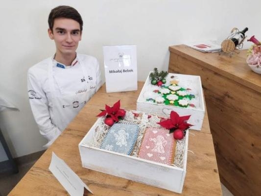 Temat tegorocznej edycji konkursu brzmiał "Kolorowe święta Bożego Narodzenia". Jednym z kryteriów oceny było nawiązanie w dekoracji właśnie do wskazanego tematu. Mikołaj Bebek - uczeń klasy 4 Technikum w Zespole Szkół Gastronomiczno-Hotelarskich im.Wł.Reymonta w Wiśle otrzymał wyróżnienie za swoje przepiękne prace: choinkę oraz anioły. Kapituła konkursu, czyli profesjonalni cukiernicy i utytułowani dekoratorzy tortów, doceniła kunsztowne zdobienia i niebywałą estetykę prac wykonanych metodą haftu krzyżykowego. Laureata do konkursu przygotowała i do końca wspierała p.Dorota Mendrek, nauczycielka przedmiotów zawodowych w ZSGH.