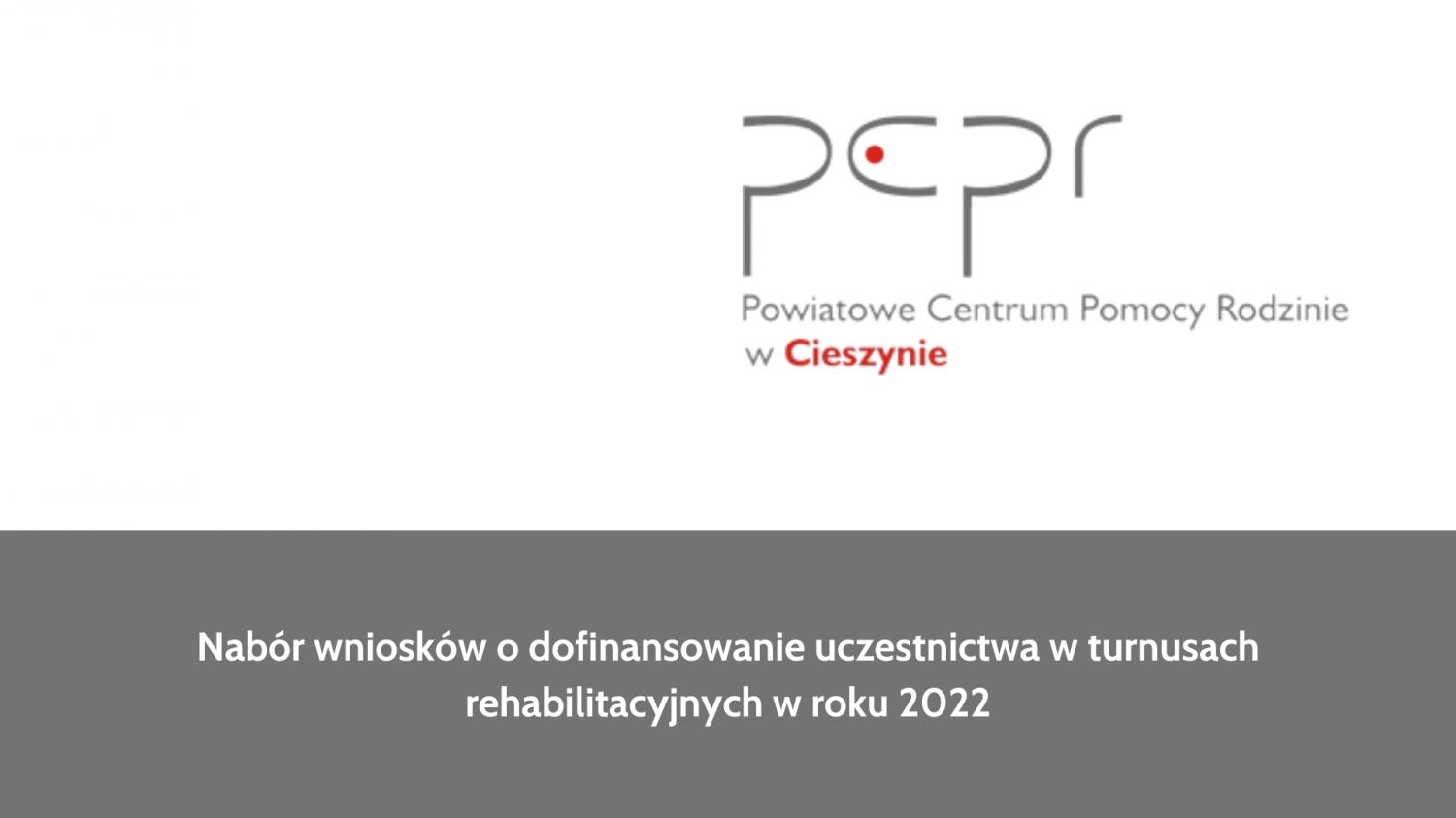 Powiatowe Centrum Pomocy Rodzinie w Cieszynie informuje, iż nabór wniosków o dofinansowanie ze środków Państwowego Funduszu Rehabilitacji Osób Niepełnosprawnych uczestnictwa w turnusach rehabilitacyjnych osób niepełnosprawnych i ich opiekunów w roku bieżącym odbędzie się w terminie od dnia 11 kwietnia do dnia 29 kwietnia 2022 r.