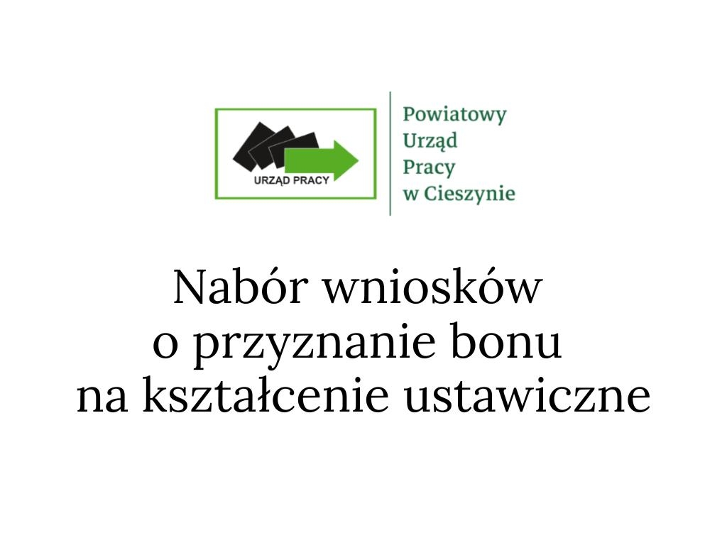 UWAGA! Dyrektor Powiatowego Urzędu Pracy w Cieszynie informuje, że od dnia 14.10.2025r. prowadzony będzie nabór wniosków o przyznanie bonu na kształcenie ustawiczne