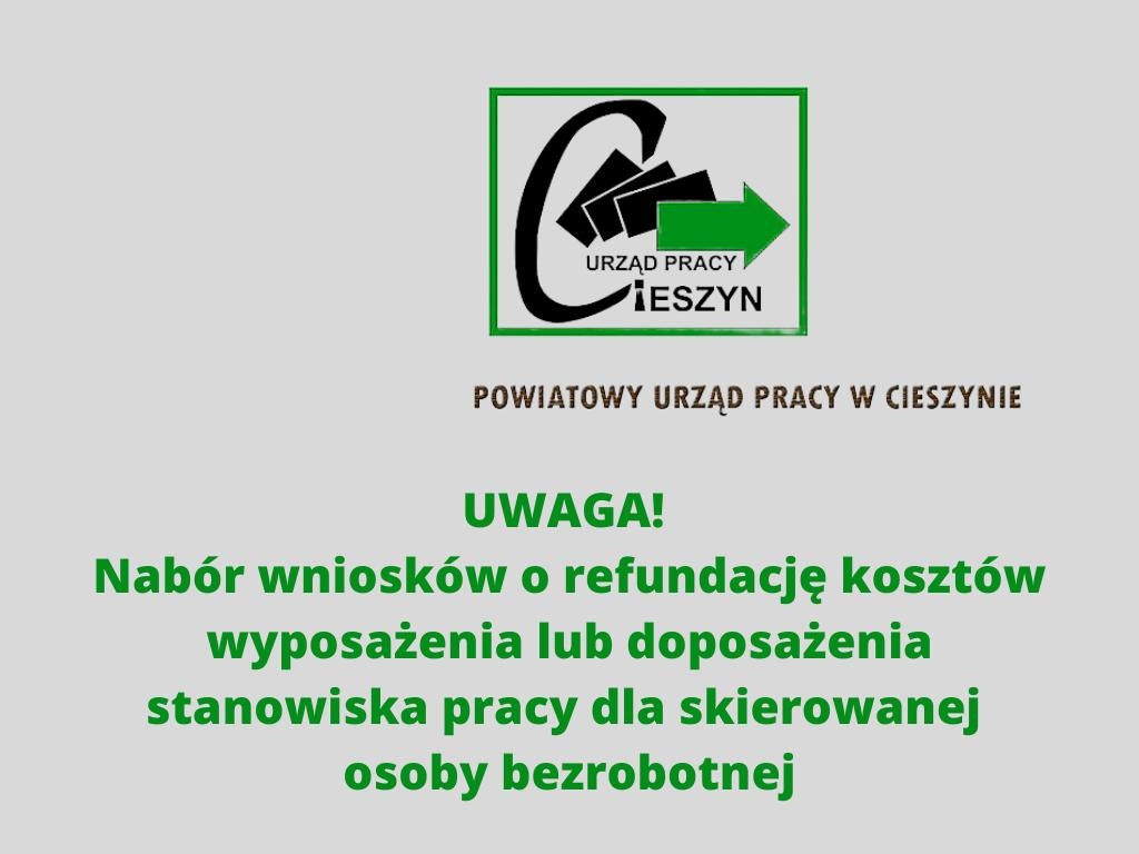 Powiatowy Urząd Pracy w Cieszynie informuje, iż z dniem 12.04.2021r. ogłasza nabór wniosków o refundację kosztów wyposażenia lub doposażenia stanowiska pracy ze środków Funduszu Pracy oraz Regionalnego Programu Operacyjnego (RPO) Województwa Śląskiego na lata 2014- 2020.