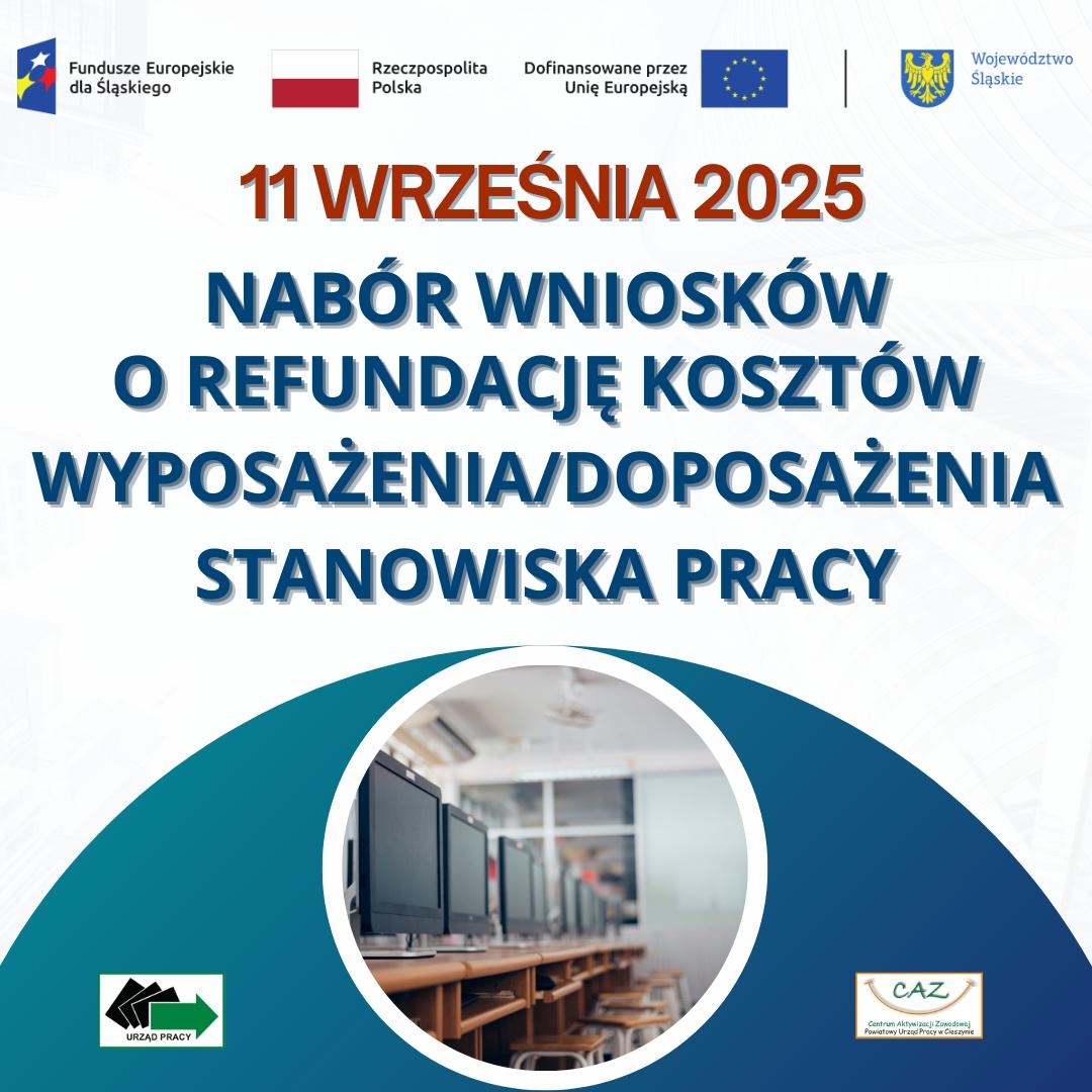Powiatowy Urząd Pracy w Cieszynie informuje, że od dnia 11.09.2025r. prowadzony będzie nabór wniosków o refundację kosztów wyposażenia lub doposażenia stanowiska.