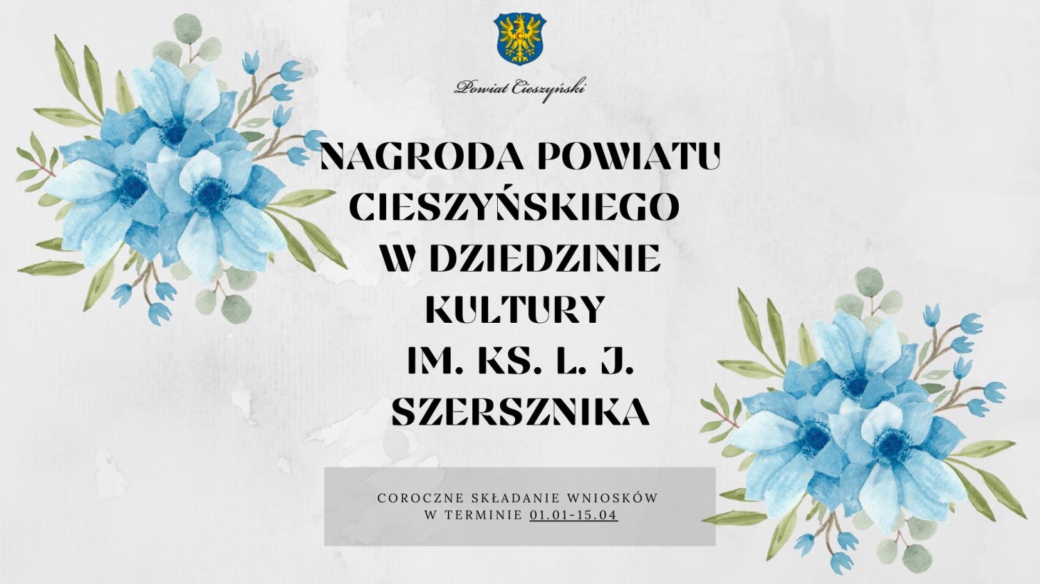 Przypominamy, iż jeszcze do 15 kwietnia składać można wnioski o przyznanie nagrody Powiatu Cieszyńskiego za osiągnięcia w dziedzinie twórczości artystycznej, upowszechniania i ochrony kultury.