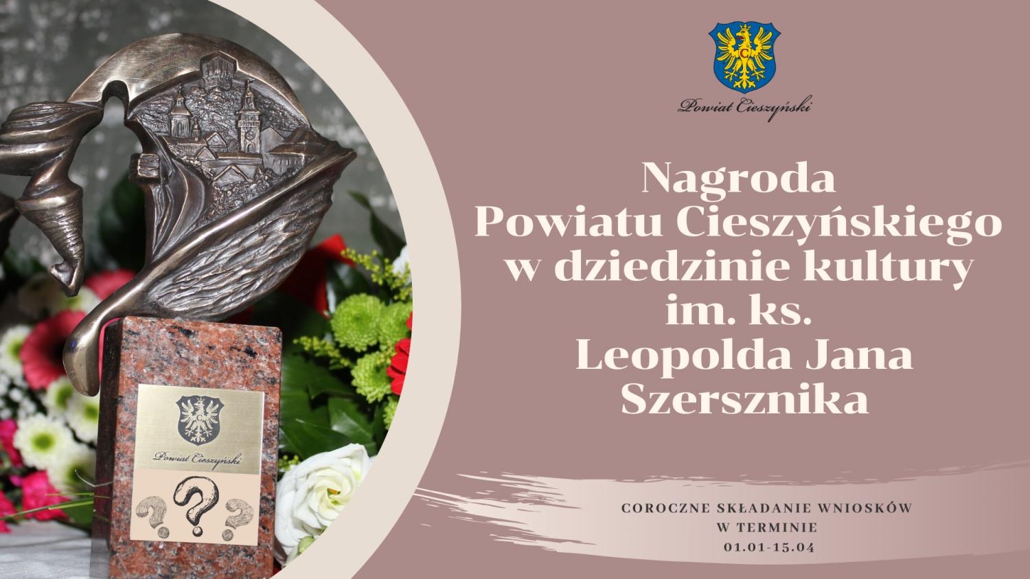 Przypominamy, iż jeszcze do 15 kwietnia składać można wnioski o przyznanie nagrody Powiatu Cieszyńskiego za osiągnięcia w dziedzinie twórczości artystycznej, upowszechniania i ochrony kultury.