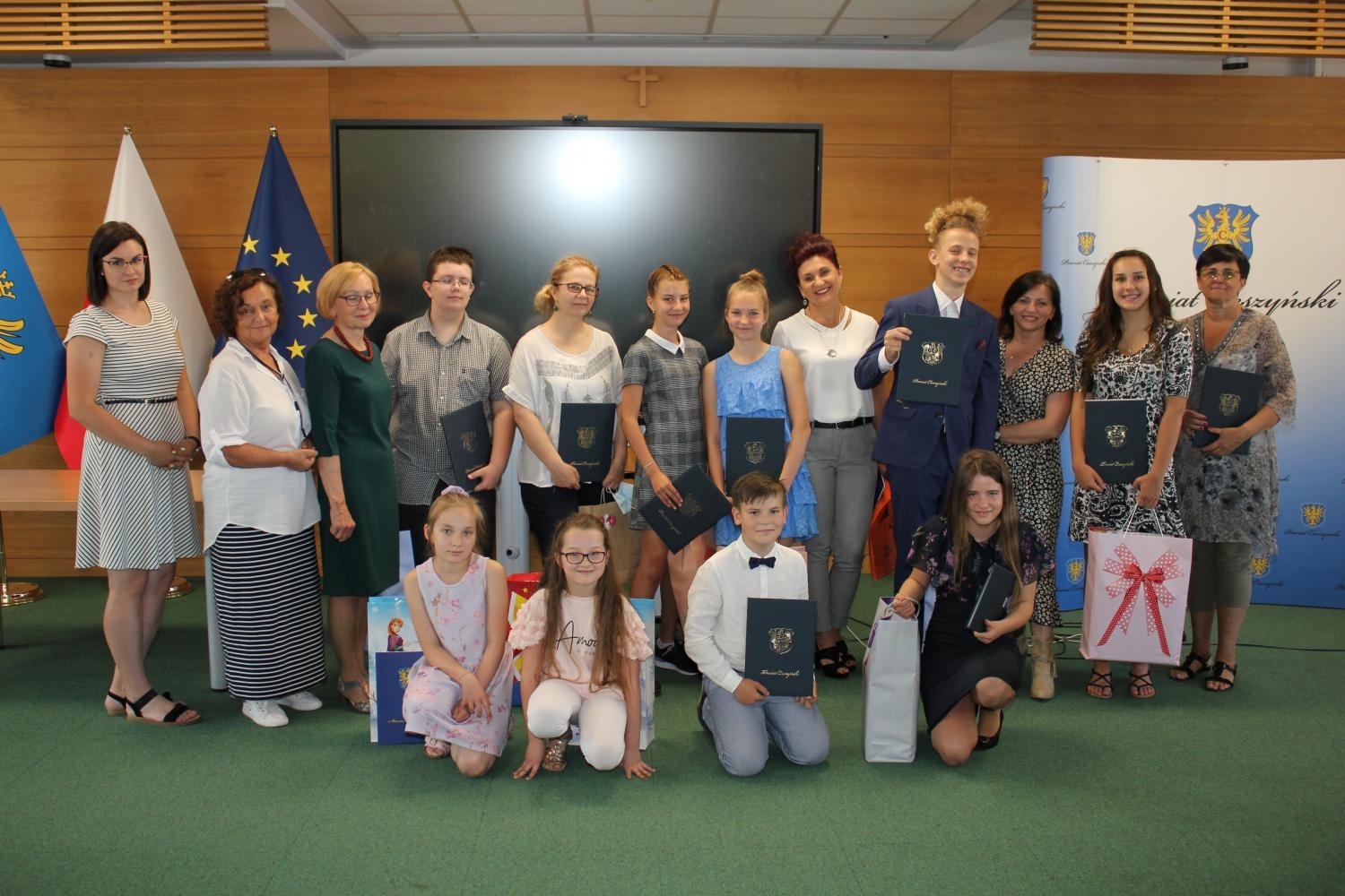 W piątek, 18 czerwca 2021 r. Janina Żagan, Wicestarosta Powiatu Cieszyńskiego oraz Anna Suchanek, Przewodnicząca Komisji Zdrowia i Pomocy Społecznej podczas krótkiego spotkania nagrodziły laureatów konkursu "Zdrowie po Cieszyńsku" w Starostwie Powiatowym w Cieszynie.