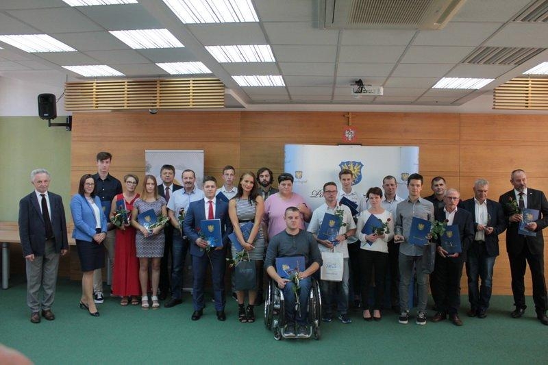 W Starostwie Powiatowym w Cieszynie uroczyście nagrodzono sportowców, którzy w 2017 r. osiągnęli znaczące sukcesy promując Śląsk Cieszyński na sportowych arenach w kraju i poza jego granicami. Na początku gratulacje złożył sportowcom Starosta Cieszyński Janusz Król. W powiecie cieszyńskim nie brakuje ludzi utalentowanych, pracowitych i zdolnych, potrafiących zadziwić swoimi sportowymi wyczynami. Jesteśmy dumni z Waszych osiągnięć, dzięki którym rozsławiacie powiat cieszyński w kraju i za granicą. Głównym punktem uroczystości było wręczenie przez Starostę i Przewodniczącego Rady Powiatu Cieszyńskiego Ludwika Kuboszka nagród finansowych za sukcesy sportowe w ubiegłym roku. W gronie nagrodzonych znaleźli się: Laureaci Nagrody finansowej Powiatu Cieszyńskiego w dziedzinie sportu za rok 2017. 1. Janusz Rokicki – lekkoatleta, reprezentant Integracyjnego Klubu Sportowego Cieszyn zdobył brązowy medal w pchnięciu kulą na Mistrzostwach Świata w Lekkiejatletyce w Londynie 2. Kajetan Kajetanowicz – zawodnik Automobilklubu Polskiego - trzeci rok z rzędu zdobył tytuł rajdowego samochodowego mistrza Europy 3. Piotr Żyła – reprezentuje Wiślańskie Stowarzyszenie Sportowe, został drużynowym mistrzem świata w skokach narciarskich w Lahti, indywidualnie zdobył brązowy medal na dużej skoczni, II miejsce w klasyfikacji generalnej Turnieju Czterech Skoczni, ponadto ustanowił rekord Polski w skokach narciarskich – 245,5 m Laureaci Nagrody finansowej specjalnej za promowanie powiatu cieszyńskiego podczas Zimowych Igrzysk Olimpijskich PYONGYANG 2018 1. Mateusz Ligocki – konkurencja snowboard, mieszkaniec Cieszyna, zawodnik AZS AWF Kraków 2. Adam Cieślar – konkurencja kombinacja norweska, mieszkaniec Istebnej, zawodnik AZS AWF Katowice 3. Paweł Słowiok - konkurencja kombinacja norweska, mieszkaniec Wisły, zawodnik AZS AWF Katowice 4.5. Dominik Bury i Kamil Bury, konkurencja biegi narciarskie, zawodnicy MKS Istebna Laureaci wyróżnienia Powiatu Cieszyńskiego w dziedzinie sportu za rok 2017 1. Grzegorz Kargul – zawodnik Cieszyńskiego Klubu Motorowego, wicemistrz Polski w motocyklowym super enduro 2. Mateusz Nieboras – zawodnik JBG-2 Professional MTB Team, zdobył złoty medal Mistrzostw Polski juniorów w cross-country 3. Balbina Sikora – pochodzi z Kończyc Wielkich, trenująca pływanie zdobyła pięciokrotne Mistrzostwo Polski w pływaniu w płetwach oraz rekord Polski na 400m 4. Mateusz Malina – pochodzi z Ustronia, zdobył srebrny medal w nurkowaniu ze wstrzymanym oddechem podczas zawodów w Dubaju, złote medale Mistrzostw Polski w konkurencjach: pływanie dynamiczne w płetwach na jednym oddechu, statyczne wstrzymanie oddechu, pływanie dynamiczne bez płetw na jednym oddechu oraz w wieloboju, dwa złote medale w Mistrzostwach Czech, w pływaniu dynamicznym w płetwach na jednym oddechu oraz w statycznym wstrzymaniu oddechu 5. Mateusz Haratyk – zawodnik NKS Trójwieś Beskidzka zdobył mistrzostwo Polski Juniorów w biegu narciarskim na dystansie 30 km 6. Eliza Rucka – zawodniczka MKS Istebna została złotą medalistką Pucharu Polski i Olimpiady Młodzieży w Sportach Zimowych 7. Paweł Wąsek – reprezentujący Śląsko Beskidzki Związek Narciarski zdobył V miejsce na Mistrzostwach Świata Juniorów w drużynowych skokach narciarskich, I miejsce na Ogólnopolskiej Olimpiadzie Młodzieży w skokach narciarskich - I miejsce Ogólnopolska Olimpiada Młodzieży (Mistrzostwa Polski Juniorów B) w drużynowych skokach narciarskich Zakopane 8. Tomasz Pilch - reprezentuje Wiślańskie Stowarzyszenie Sportowe, zdobył V miejsce na Mistrzostwach Świata Juniorów drużynowo oraz I miejsce w Pucharze Kontynentalnym 9. Katarzyna Wąsek – reprezentantka Stowarzyszenia Sportowo-Rekreacyjnego Czantoria z Ustronia, jest mistrzynią Polski juniorek w slalomie i dwuboju slalomowym ponadto została srebrną medalistką w slalomie i brązowa medalistką w slalomie gigancie na Mistrzostwach Polski seniorów 10. Joachim Krężelok – zawodnik UKS Wisła, zdobył Mistrzostwo Polski osób niepełnosprawnych w rzucie oszczepem 11. Katarzyna Słomka, reprezentująca Integracyjny Klub Sportowy Cieszyn, zdobyła złoty medal w rzucie maczugą na Mistrzostwach Polski w Białymstoku 12. Maria Juroszek – Integracyjny Klub Sportowy Cieszyn, trenująca siłowanie na rękę została brązowa medalistka Mistrzostw Świata, dwukrotną brązową medalistka Mistrzostw Europy Osób Niepełnosprawnych oraz czterokrotną srebrną medalistką Mistrzostw Polski w Armwrestlingu na prawą rękę 13. Zbigniew Gryżboń, reprezentująca Integracyjny Klub Sportowy Cieszyn trener lekkiej atletyki, doprowadził swoich podopiecznych do startu i wielokrotnych sukcesów na Mistrzostwach Świata, oraz Mistrzostwach Polski 14. Michał Haratyk - mieszkaniec Kiczyc, zawodnik KS Sprint Bielsko Biała, zdobył V miejsce na Mistrzostwach Świata w lekkiej atletyce w Londynie 15. Radosław Sobczyk – zawodnik MKS Ustroń, został halowym mistrzem Polski w lekkiej atletyce juniorów w 7-boju oraz brązowym medalistą Mistrzostw Polski w lekkiej atletyce juniorów w 10-boju 16. Magdalena Kubala – trenerka lekkiej atletyki MKS Ustroń, swoją pracą przyczyniła się do zdobycia medali między innymi Radosława Sobczyka, odnoszącym sukcesy w wieloboju 17. Grzegorz Szczechla – zawodnik Misyjnego Klubu Sportowo-Rekreacyjnego Centrum Dzięgielów, trenujący ekstremalne biegi przez przeszkody, zdobył I miejsce w zawodach OCR Series w Belgi i w Dani, III miejsce w Niemczech, IV miejsce na Mistrzostwach Europy w sztafecie w Holandii oraz V miejsce na Mistrzostwach Świata w Kanadzie 18. Wojciech Probst - mieszkaniec Hażlacha zdobył brązowy medal Mistrzostw Polski w Ultradystansowym Biegu Górskim 19. Zuzanna Pasterny – mieszkanka Cieszyna, trenująca karate zdobyła srebrny medal w kategorii juniorek (kumite) podczas Mistrzostw Europy w Karate 20. Klaudia Szymań