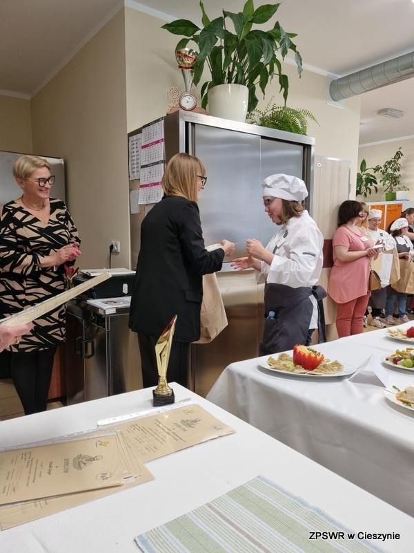 Dnia 10.04.2024 dwie drużyny kucharzy ze Szkoły Przysposabiającej do Pracy przy ZPSWR w Cieszynie wyruszyły do Czechowi -Dziedzic, aby wziąć udział w zmaganiach konkursowych o puchar Starosty Bielskiego w kategorii " Najsprawniejszy w zawodzie - Kucharz Artysta".