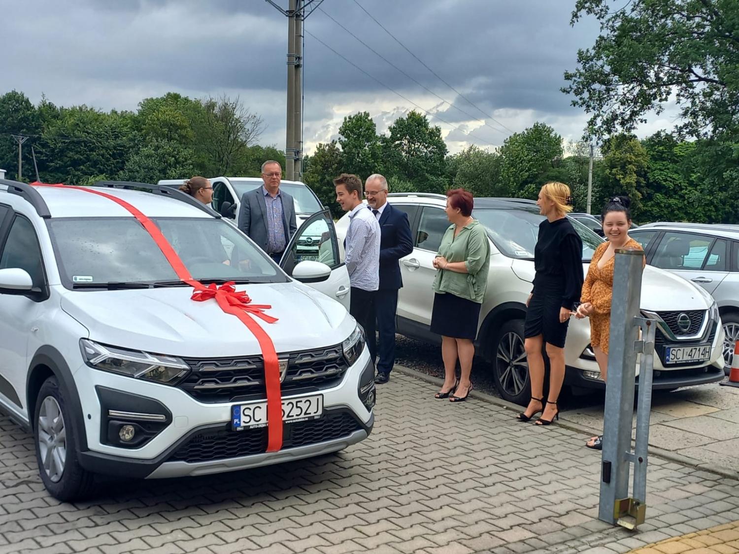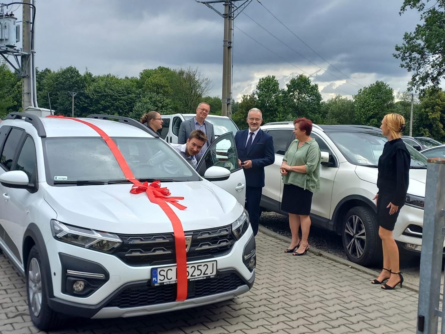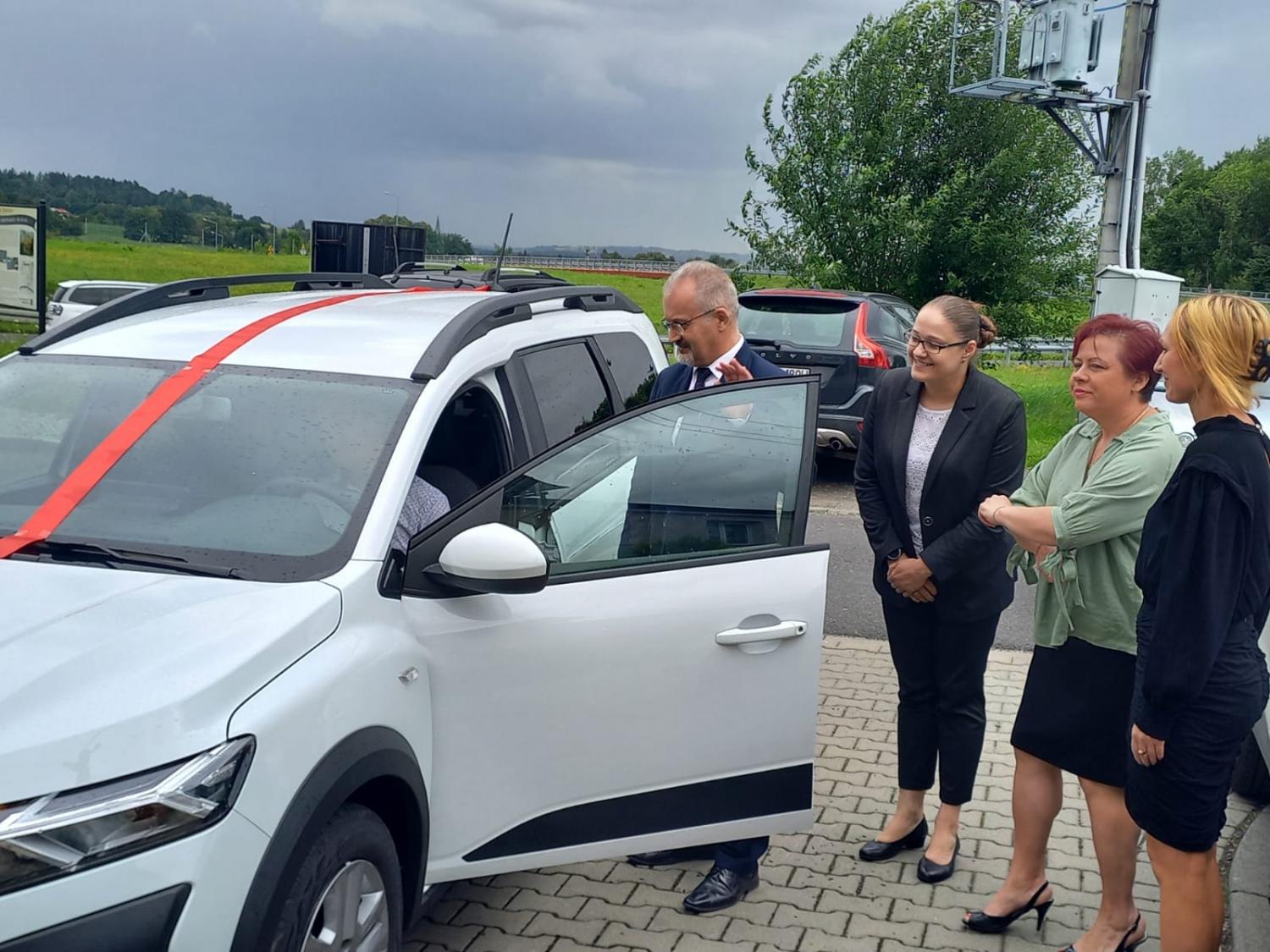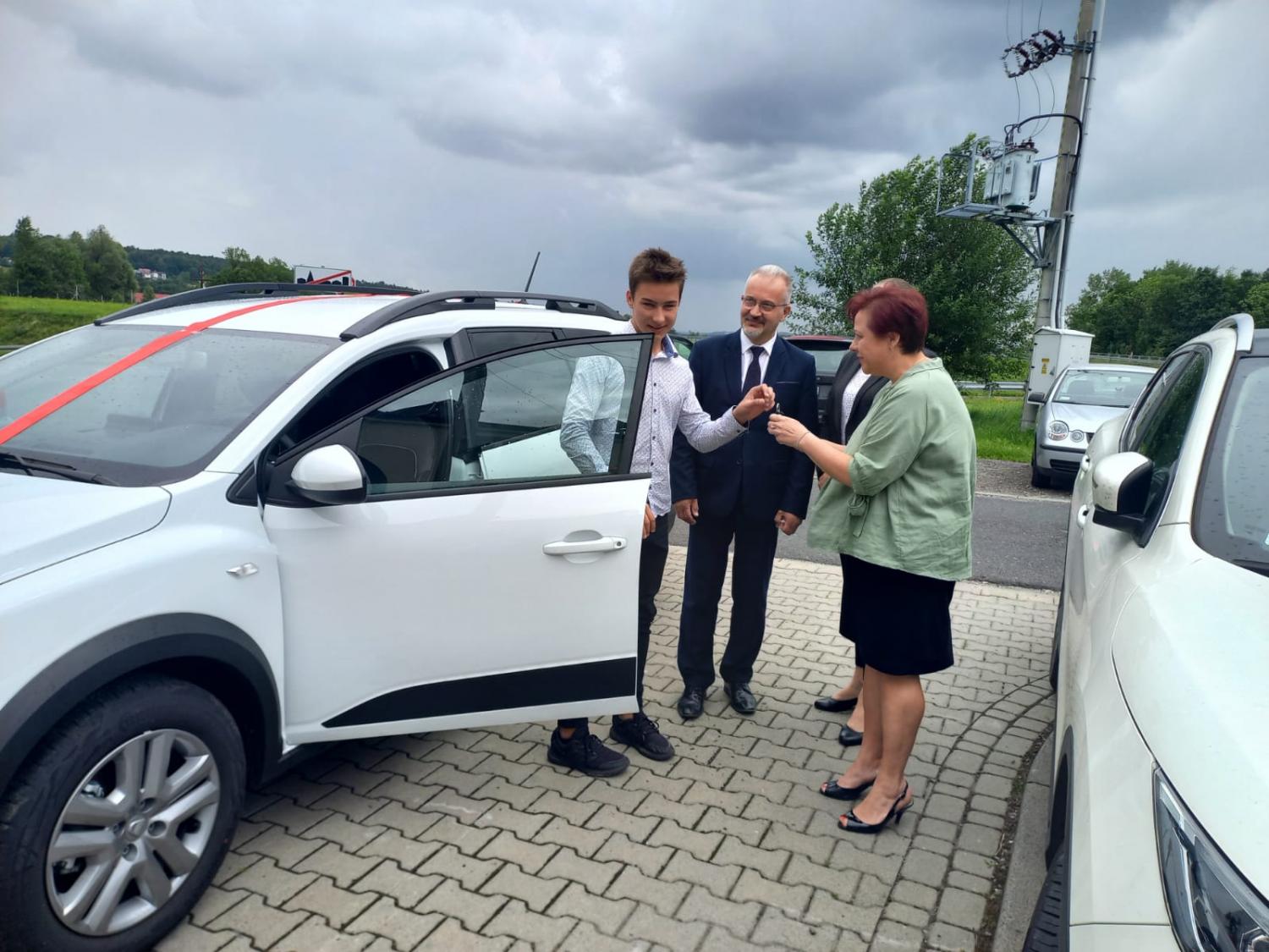 W poniedziałek, 11.07.2022 r. Mieczysław Szczurek Starosta Cieszyński uroczyście przekazał na ręce Małgorzaty Ratajczak, Dyrektor Domu Dziecka w Międzyświeciu kluczyki do nowego samochodu służbowego - Dacii Jogger.