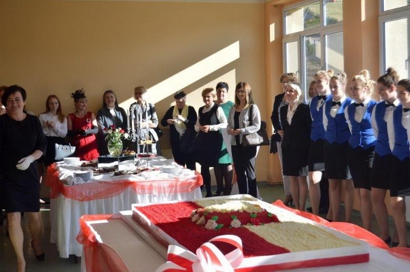 Następny punkt programu brzmiał „A polskość to słodycz sama?… Biało-czerwony bankiet w 100 rocznicę odzyskania niepodległości”. Centralnym punktem bankietu był tort niepodległościowy, który powstał m.in. z 420 sztuk jaj, 8 kg mąki pszennej, a dokonane dzieło zwieńczała 10 metrowa wstążka w barwach flagi narodowej. Ów słodki antrakt stanowił przedsmak dalszego ciągu radosnego świętowania, ponieważ na sali gimnastycznej ZSGH czekali już aktorzy, by przedstawić - montaż literacko-muzyczny „Kabaretiadę Juliana Tuwima”.