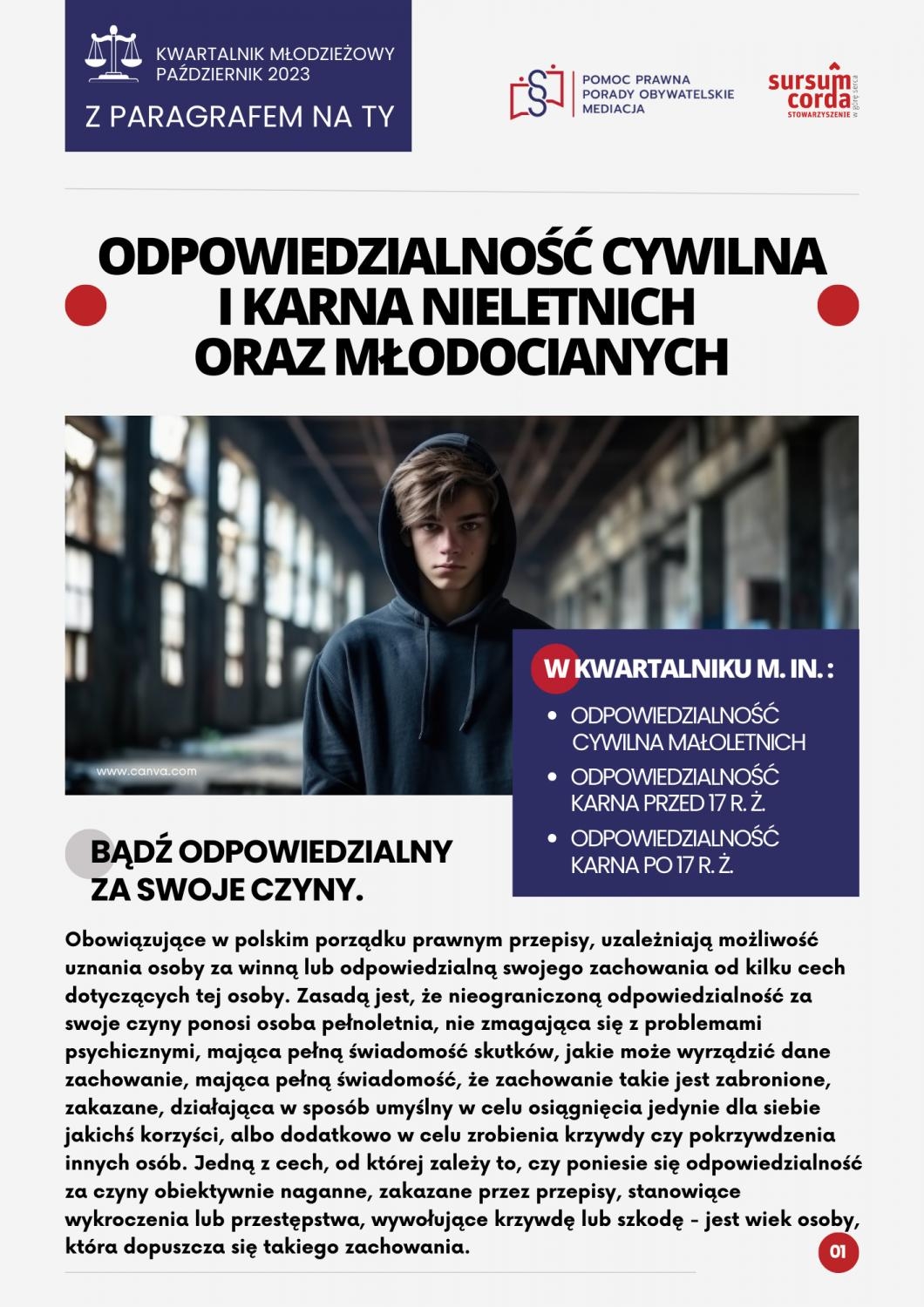 "Odpowiedzialność cywilna i karna nieletnich oraz młodocianych"- kwartalnik młodzieżowy "Z paragrafem na Ty"