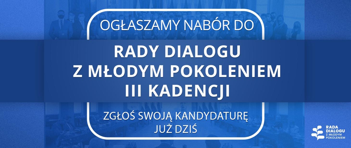 Wymogi naboru i szczegóły: https://www.gov.pl/web/dlamlodych/ogloszenie-o-naborze-kandydatow-na-czlonkow-iii-kadencji-rady-dialogu-z-mlodym-pokoleniem