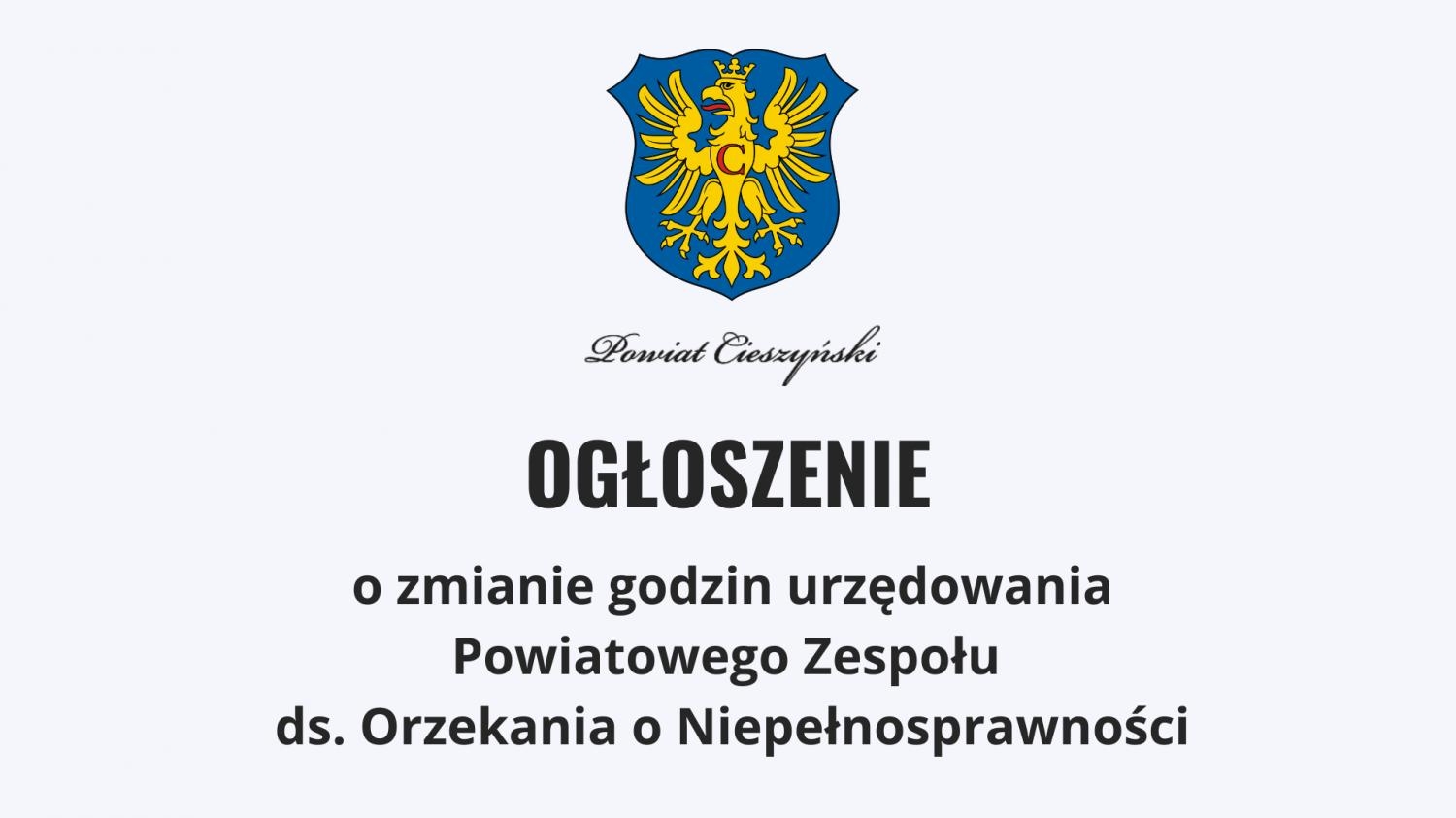 Ogłoszenie o zmianie godzin urzędowania Powiatowego Zespołu ds. Orzekania o Niepełnosprawności