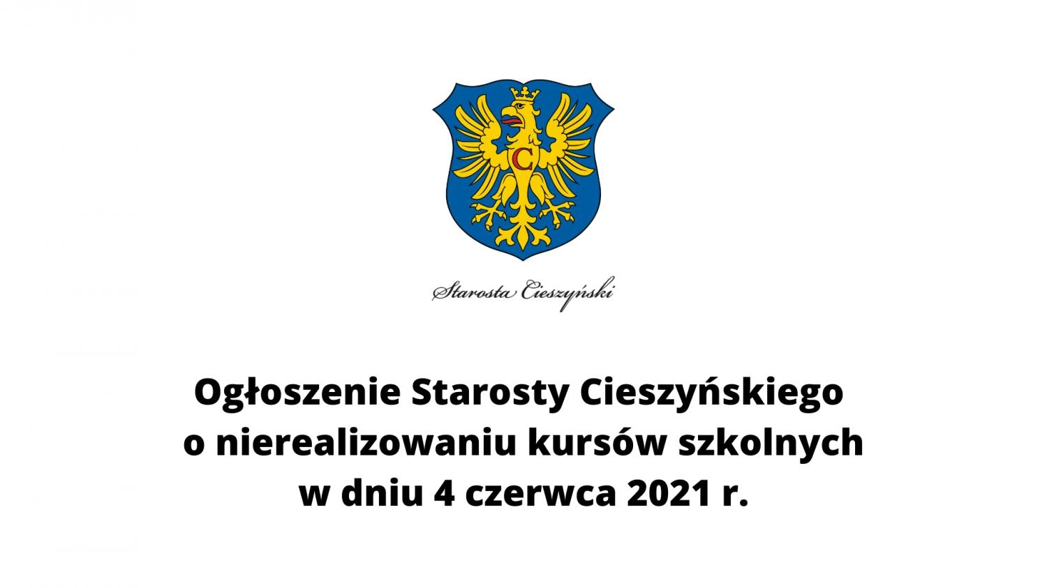Ogłoszenie Starosty Cieszyńskiego o nierealizowaniu kursów szkolnych w dniu 4 czerwca 2021 r.