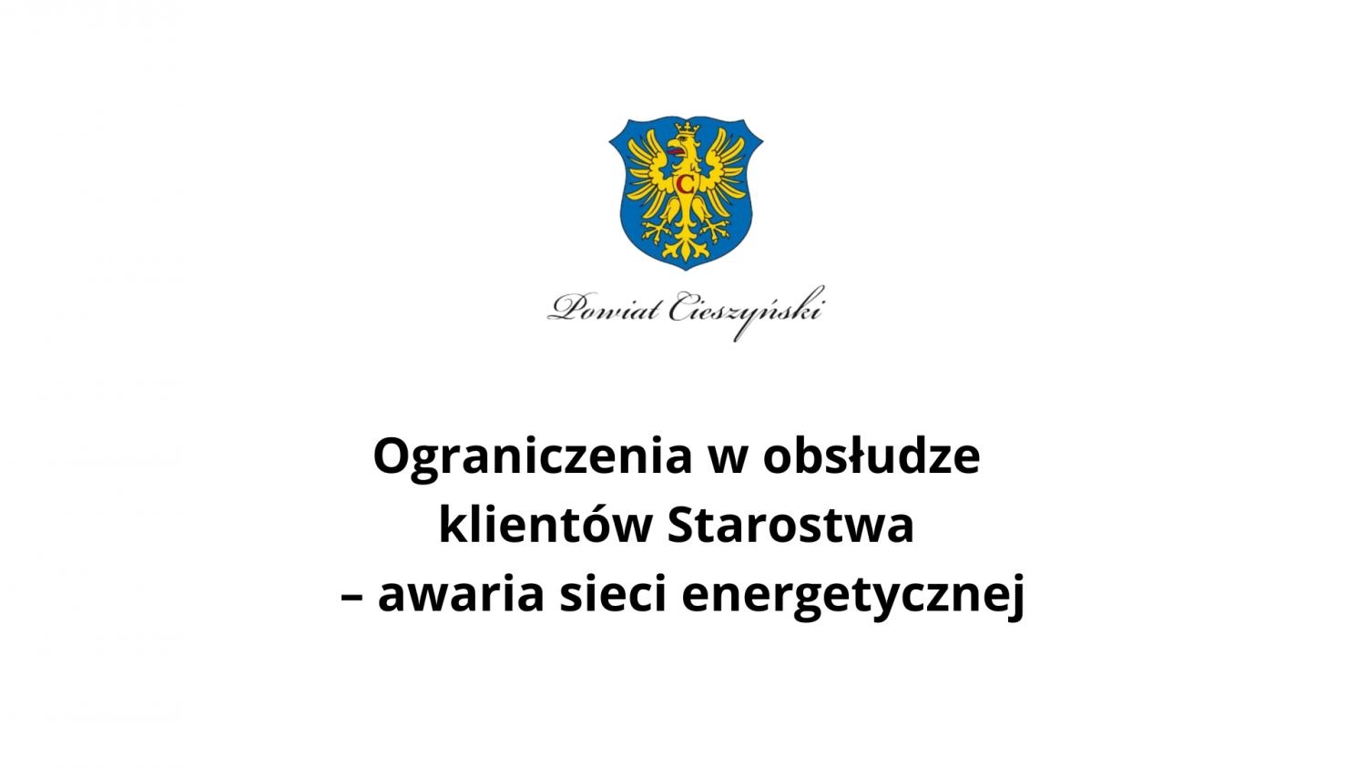 Z uwagi na awarię sieci energetycznej, obsługa interesantów w budynkach Starostwa Powiatowego w Cieszynie może dziś być utrudniona lub ograniczona.