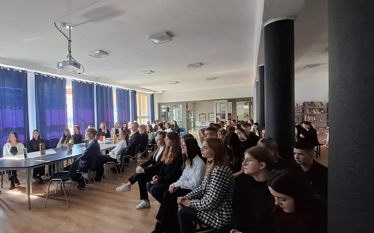 Jednym z głównych punktów podsumowania DJO było spotkanie z Panią Starostą Powiatu Cieszyńskiego – Janiną Żagan, która podzieliła się swoimi doświadczeniami jako pierwsza kobieta na takim stanowisku. Pani Żagan odpowiedziała na wszystkie pytania uczniów – te intrygujące, wzbudzające refleksję i wspomnienia, a także wywołujące uśmiech. Rozmowa była inspirująca i skłoniła do przemyśleń na temat roli kobiet w polityce i ich znaczeniu dla rozwoju regionu, a także – miejmy nadzieję – zachęciła młode kobiety do realizacji własnych marzeń i postawionych celów, bez względu na przeszkody.