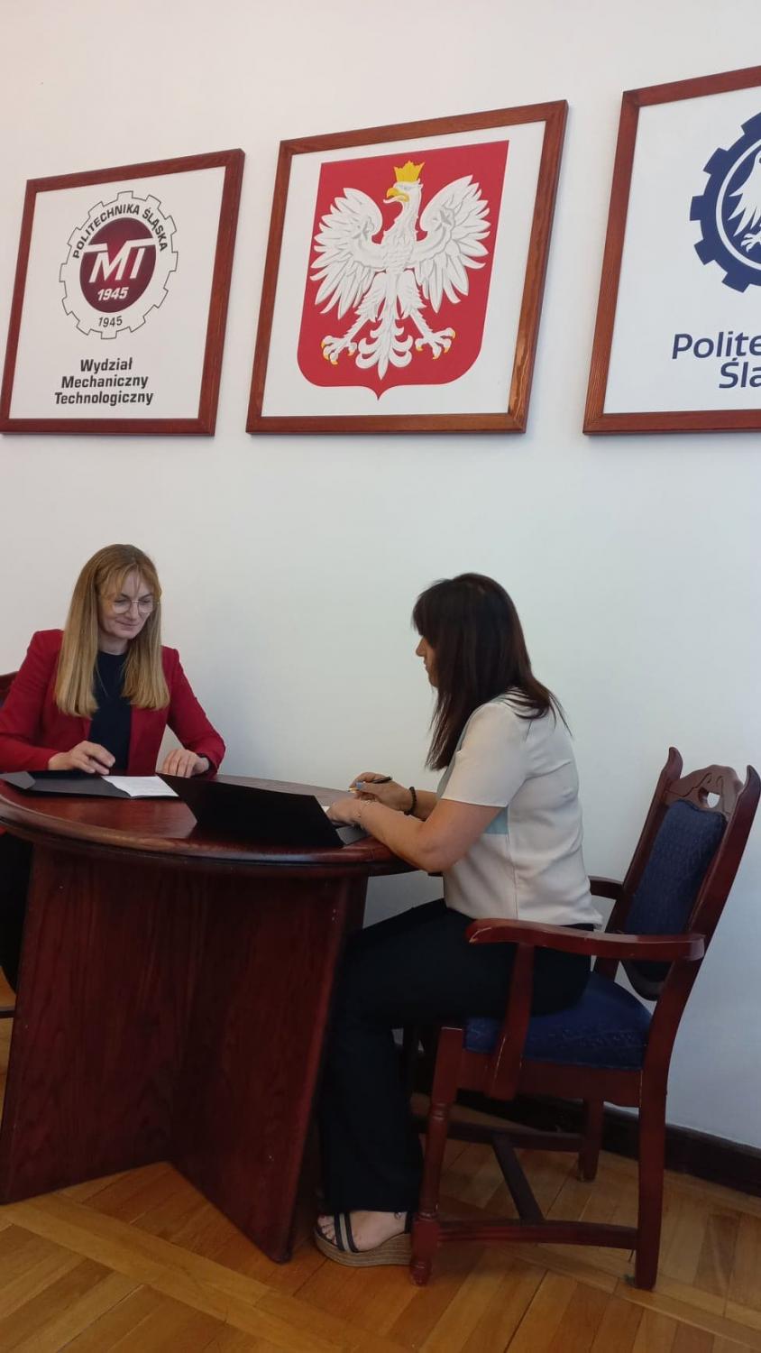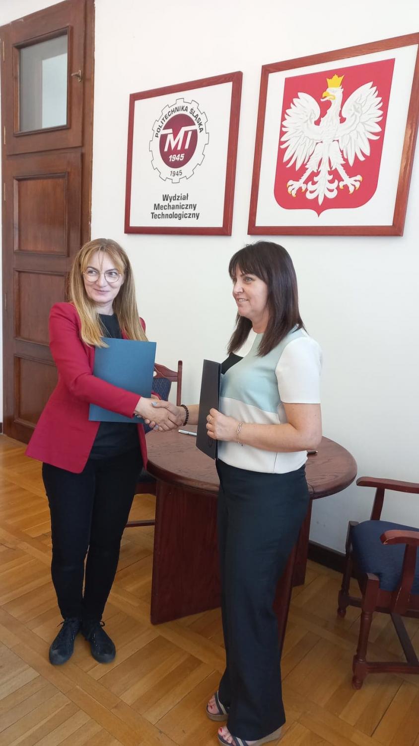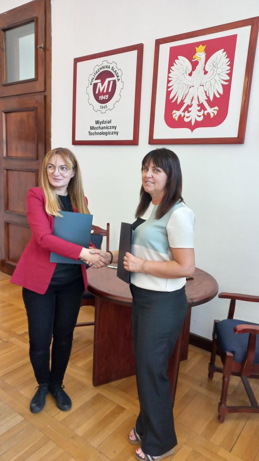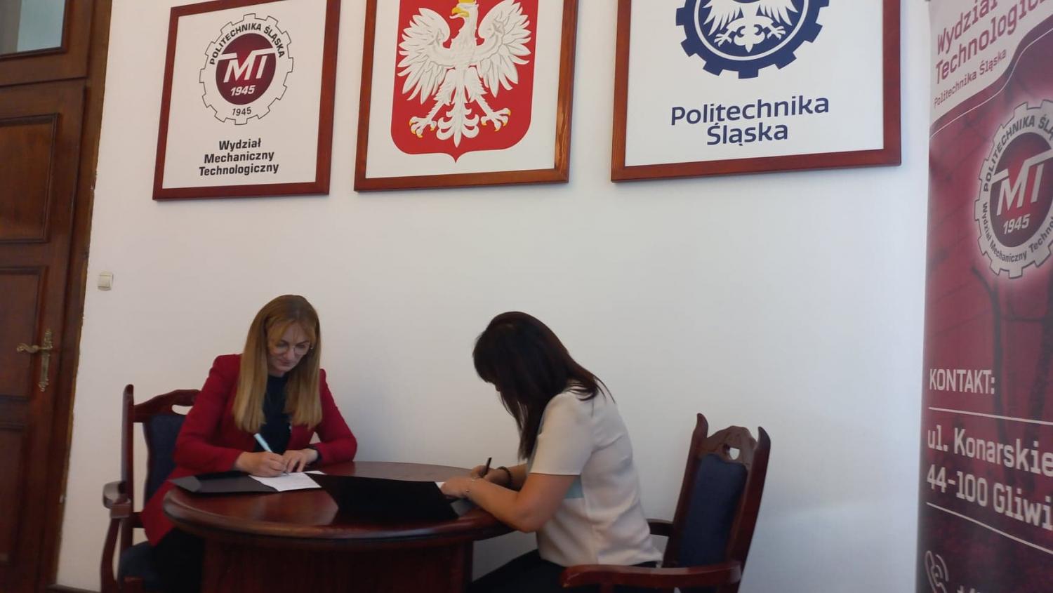 Umowę podpisała dyrektor szkoły mgr Bożena Cholewa i dziekan Wydziału Mechaniczno - Technologicznego dr hab. Anna Timofiejczuk prof PŚ.
