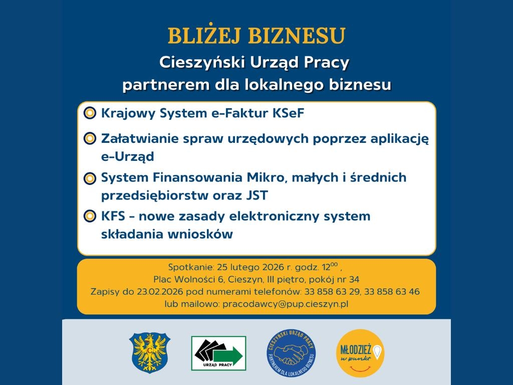 Spotkanie odbędzie się 25 lutego 2026 r. (środa), godz. 12:00, w Powiatowym Urzędzie Pracy w Cieszynie, Plac Wolności 6, III piętro, pokój nr 34.